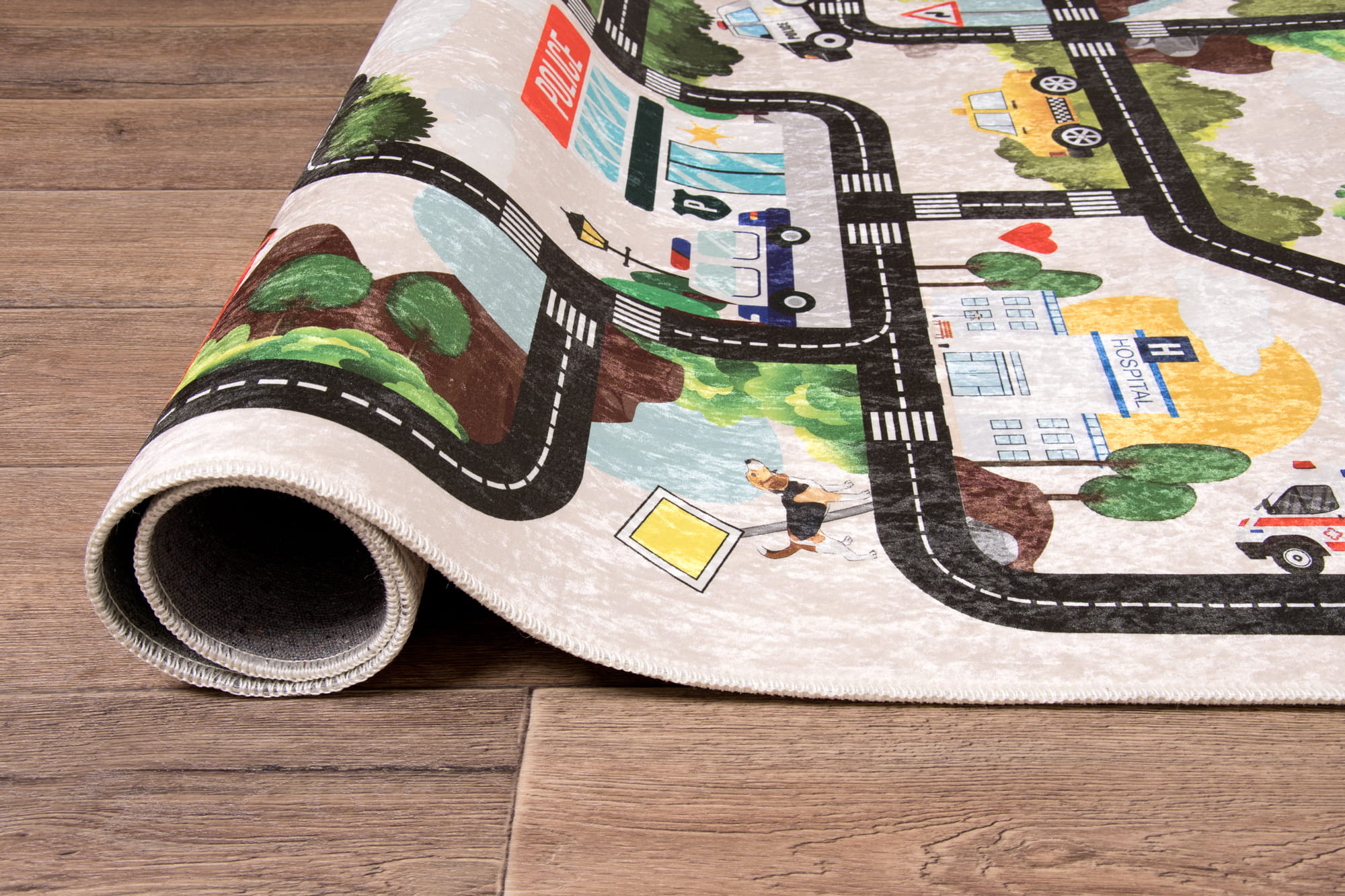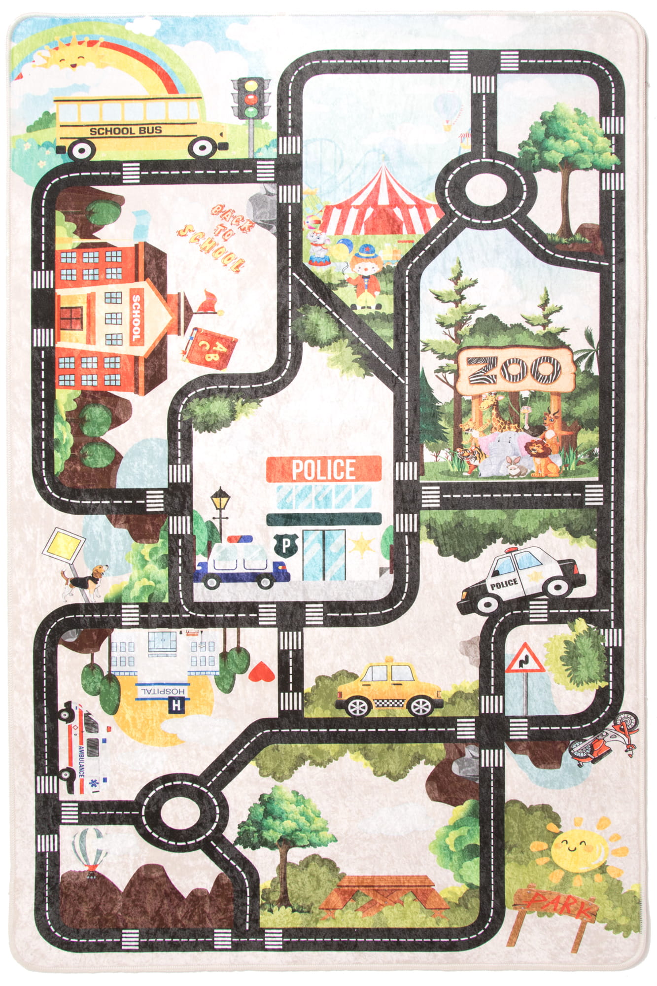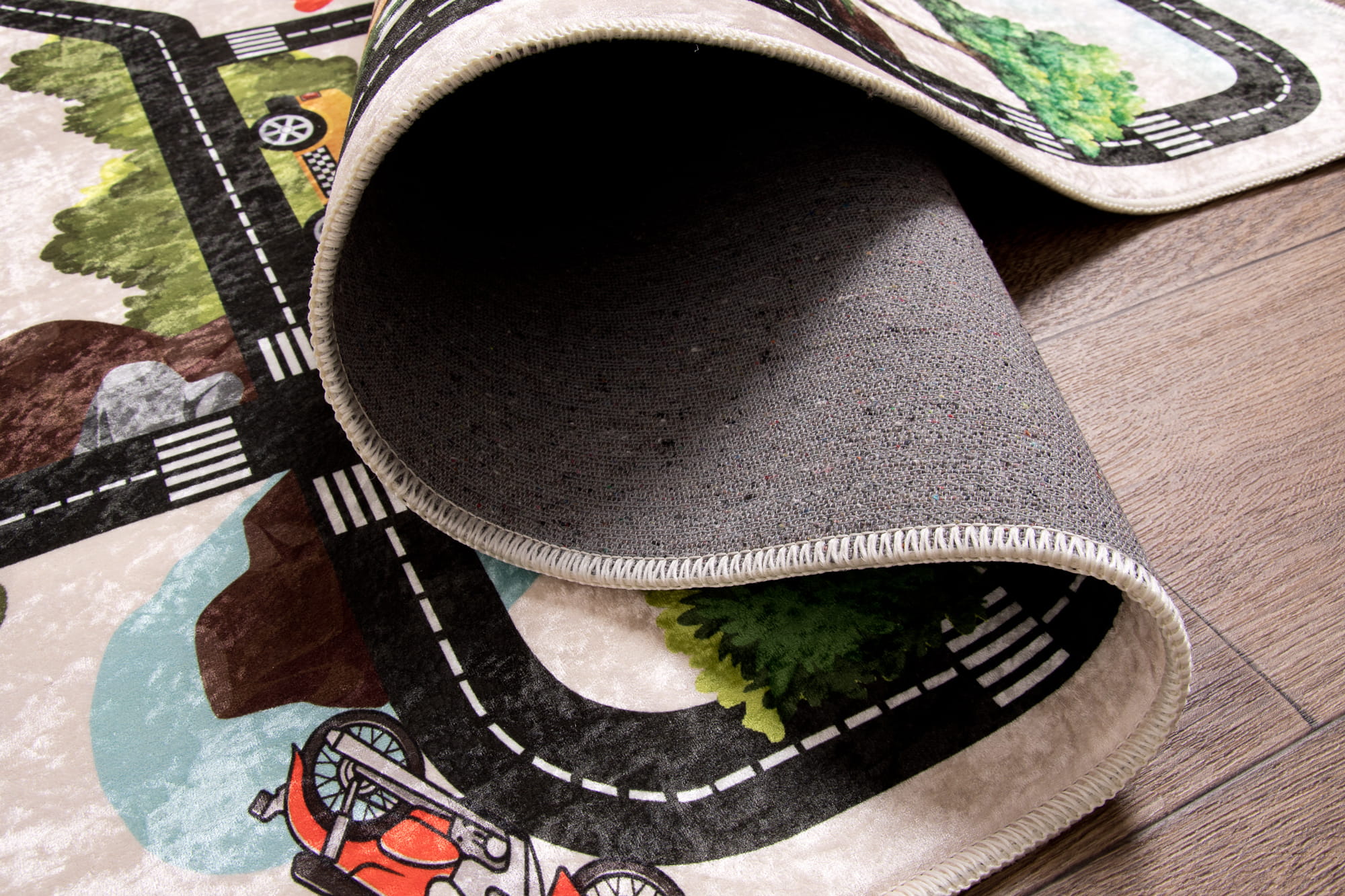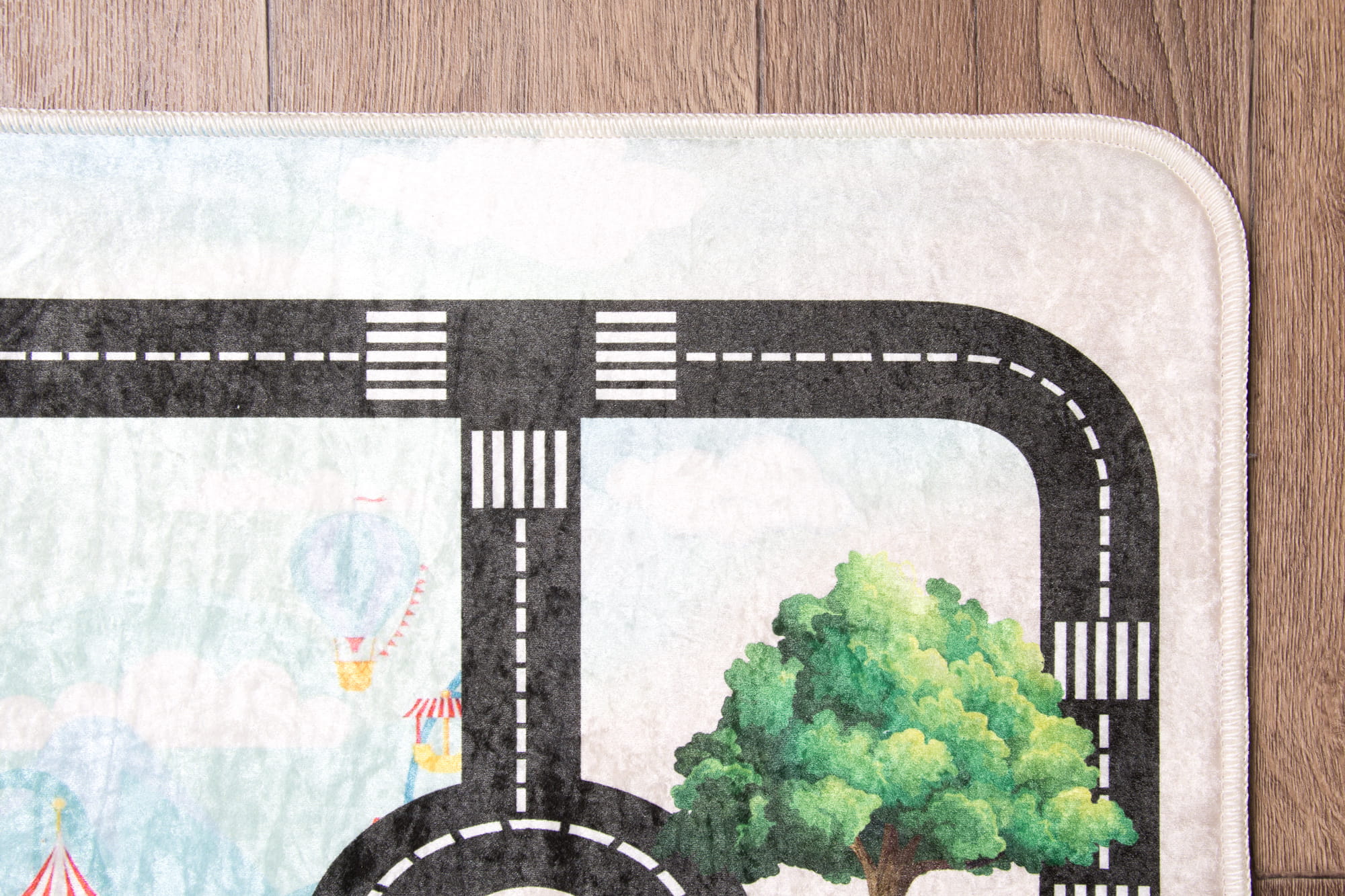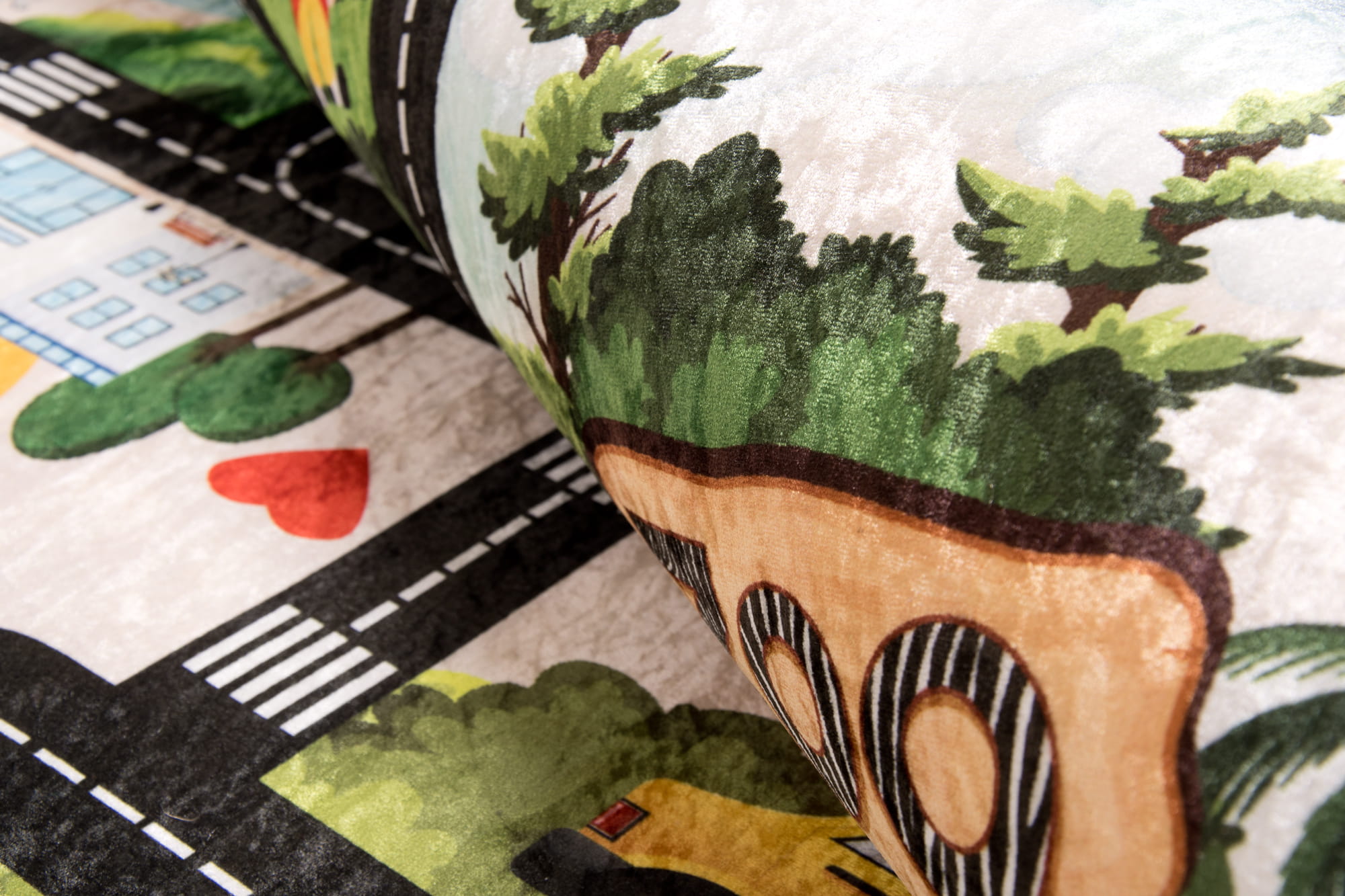 Dywan w drogi to nie tylko praktyczny dodatek do pokoju dziecka, ale również świetne miejsce do zabawy. Inspiruje do odkrywania fascynujących przygód w mini miasteczku. Niskie runo ułatwia czyszczenie i użytkowanie dywanu.