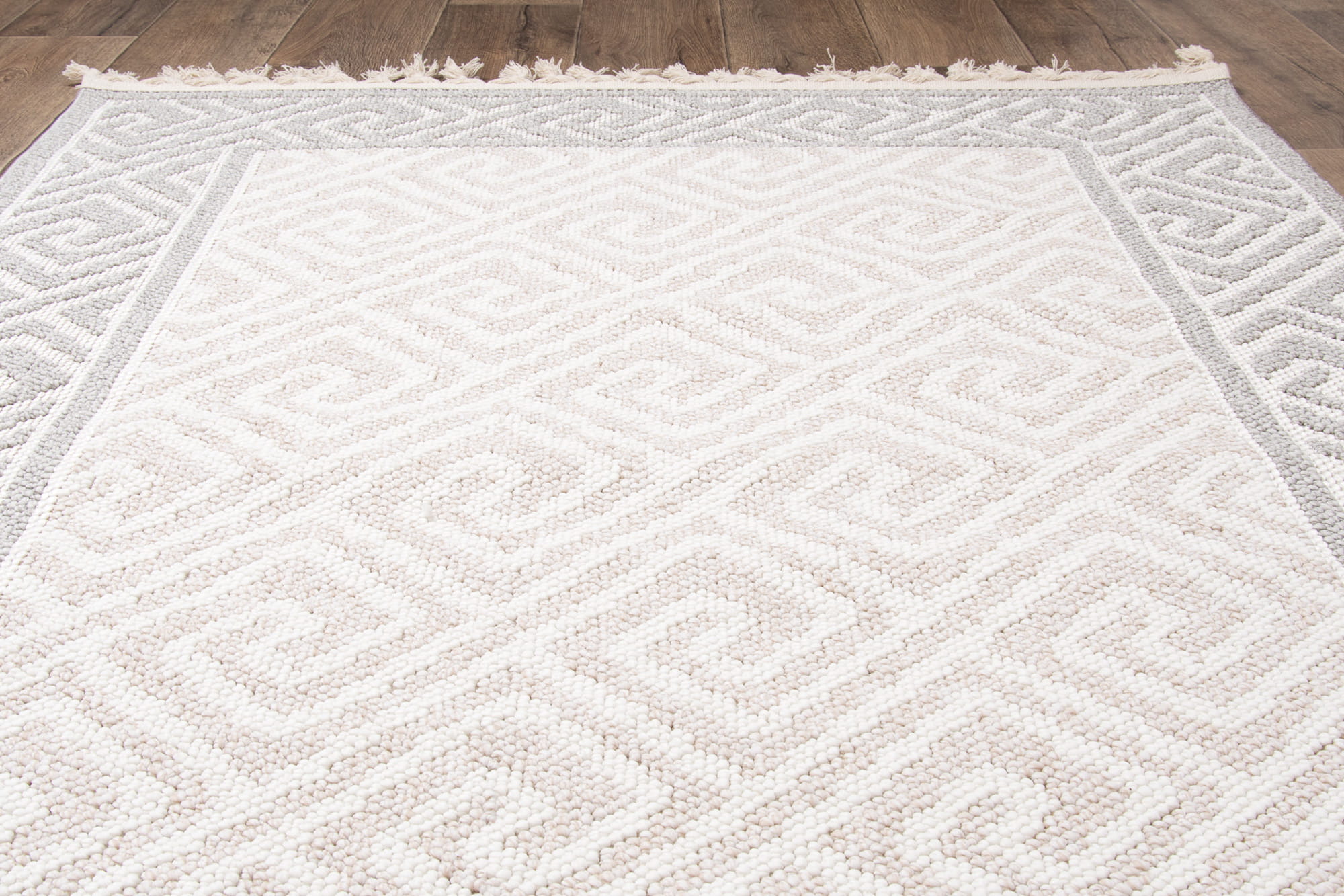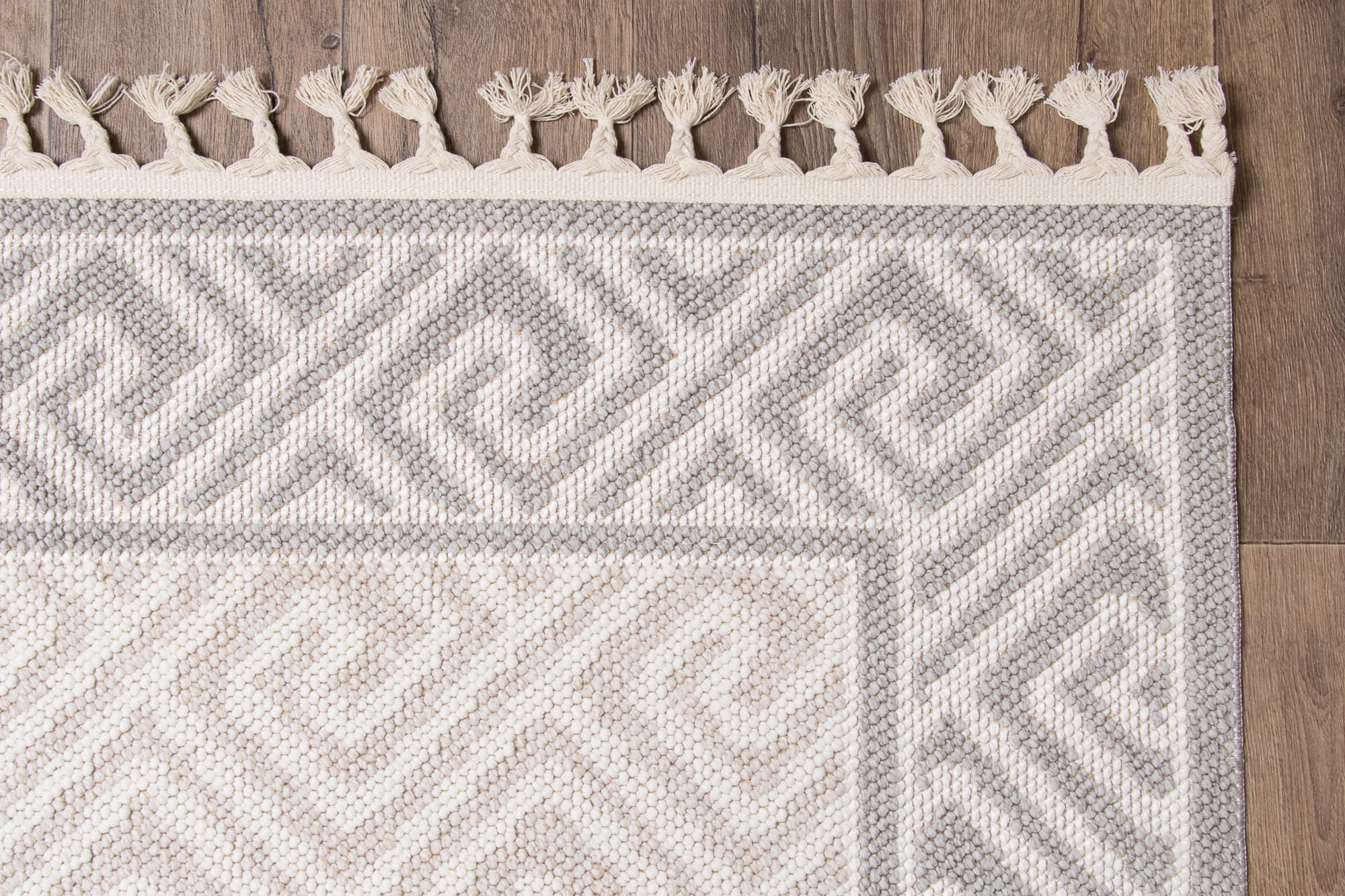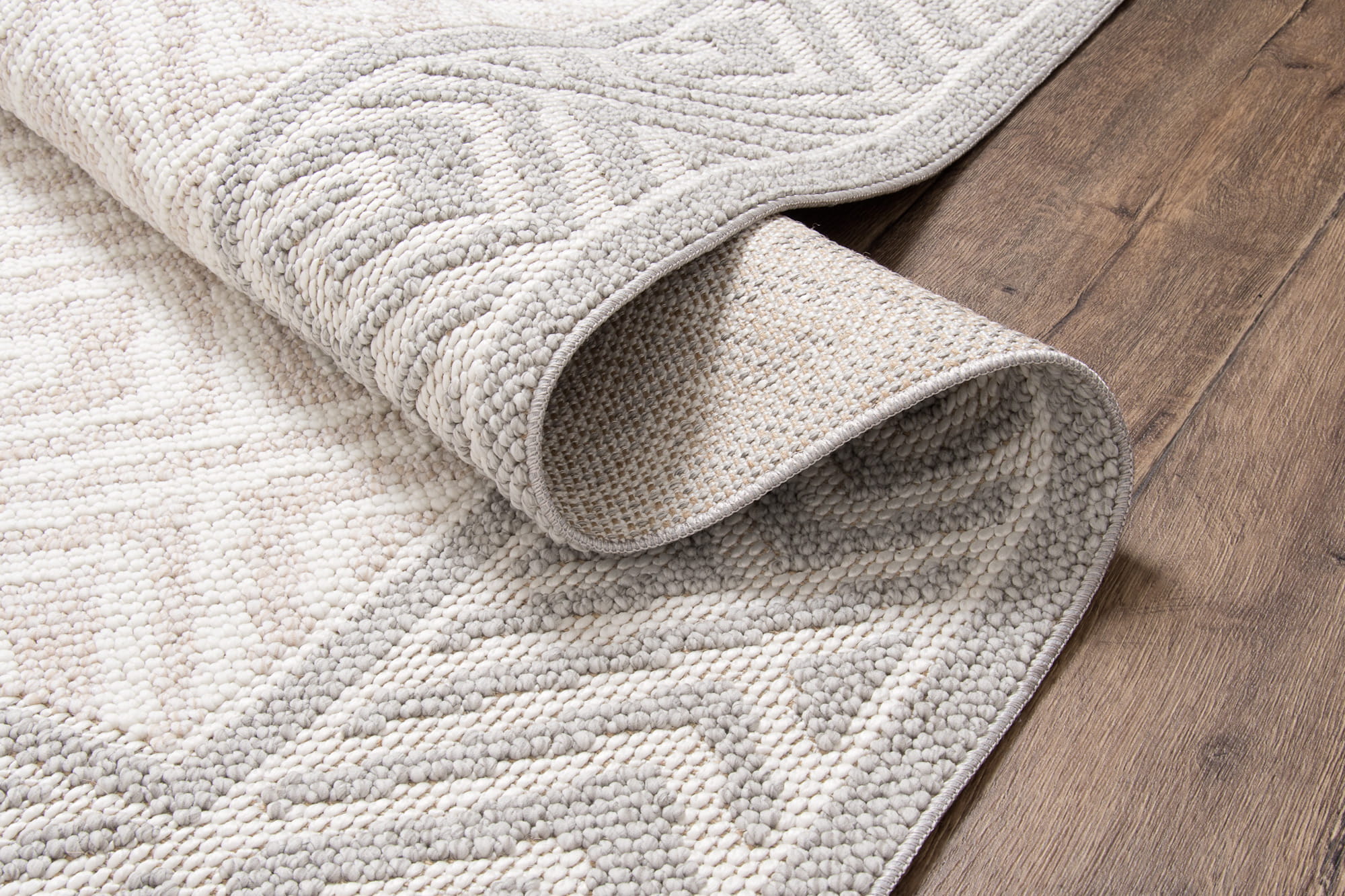 Nowoczesny dywan wyróżniający się tkaniem pętelkowym oraz geometrycznym wzorem. Jest to produkt zatwierdzony do stosowania na zewnątrz np. na balkonach, czy tarasach, łatwy w utrzymaniu czystości i odporny na zabrudzenia.