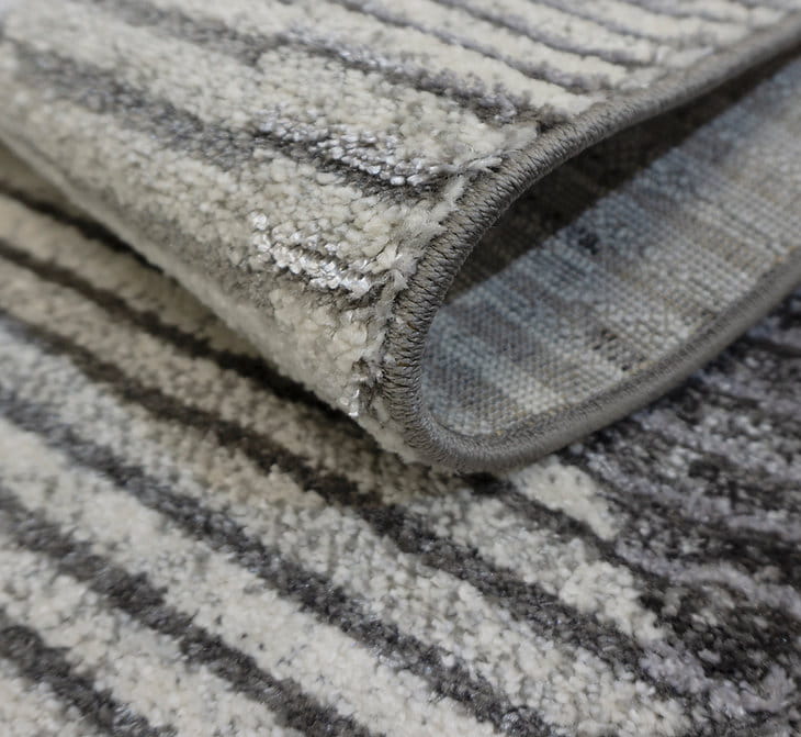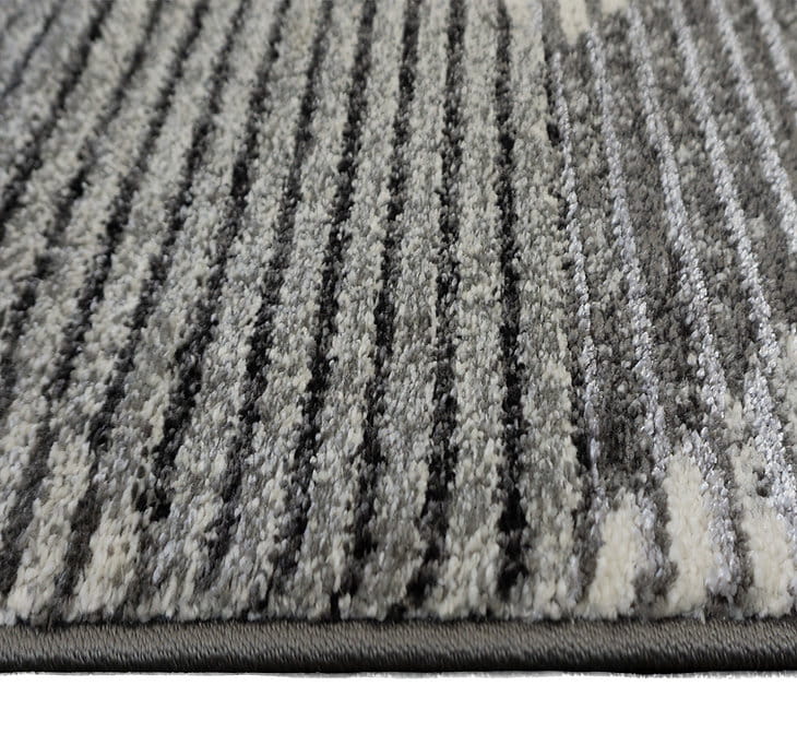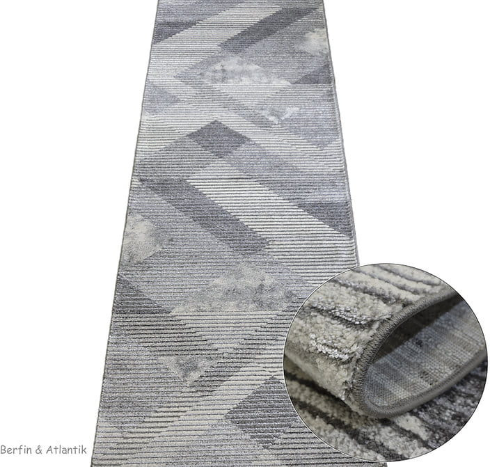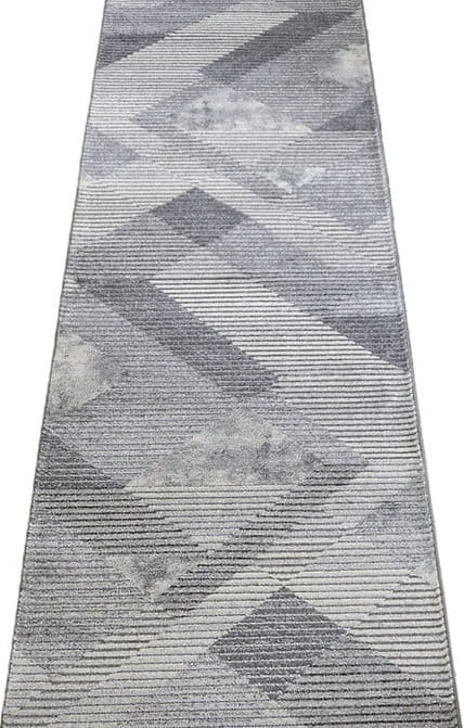 Nowoczesny, miękki chodnik dywanowy w odcieniach szarości z eleganckim geometrycznym wzorem. Jego runo subtelnie połyskuje w zależności od kąta padania światła, dodając wnętrzu wyjątkowego charakteru. Wykonany z trwałych włókien syntetycznych, jest odporny na zabrudzenia i łatwy w utrzymaniu czystości.