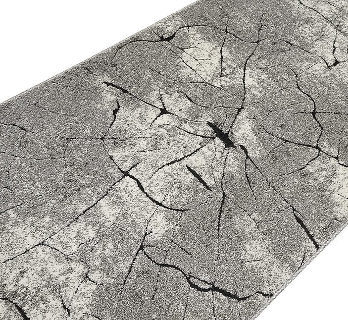 Syntetyczny chodnik w odcieniach szarości, z nowoczesnym przecieranym wzorem inspirowanym strukturą spękanego pnia. Jego miękkie i przyjemne w dotyku runo cechuje się wysoką odpornością na ścieranie. Wykonany z uszlachetnionej termicznie przędzy, gwarantuje trwałość oraz komfort w codziennym użytkowaniu.