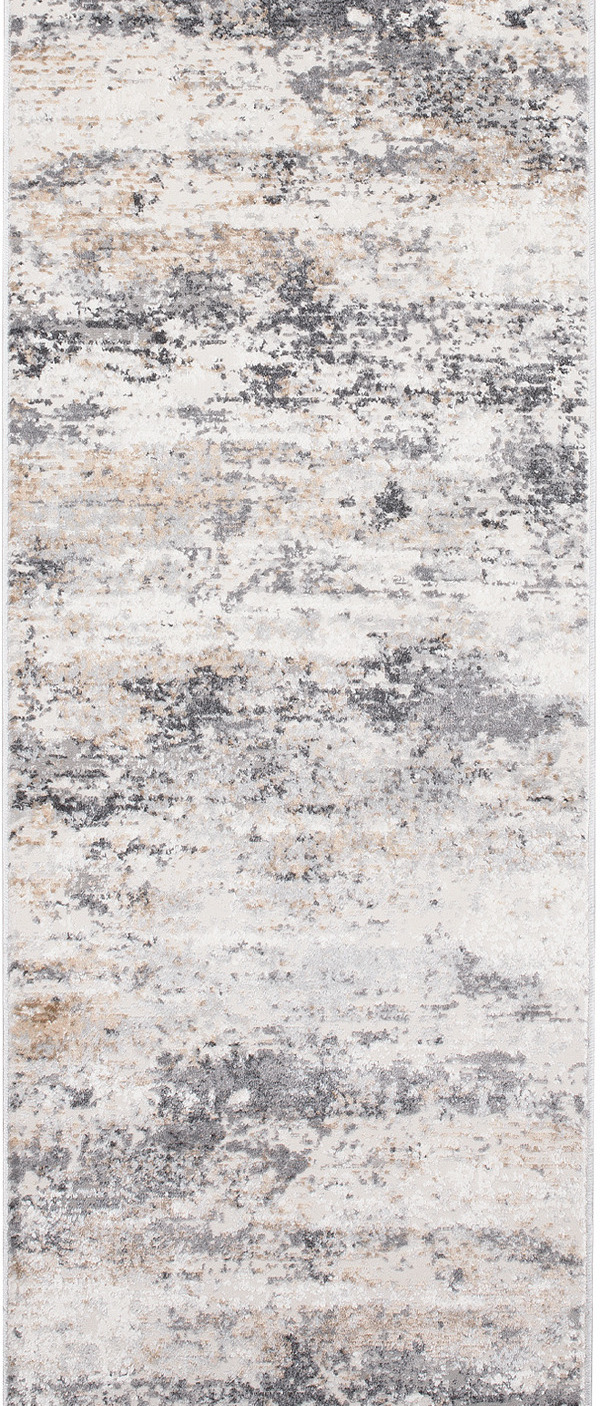 Chodnik krótkowłosy wykonany z wysokiej jakości włókien syntetycznych. Utrzymany w kremowo-beżowej tonacji z subtelnym, przetartym wzorem w odcieniach jasnego brązu i piasku. Chodnik jest elegancki, trwały i łatwy w utrzymaniu czystości.