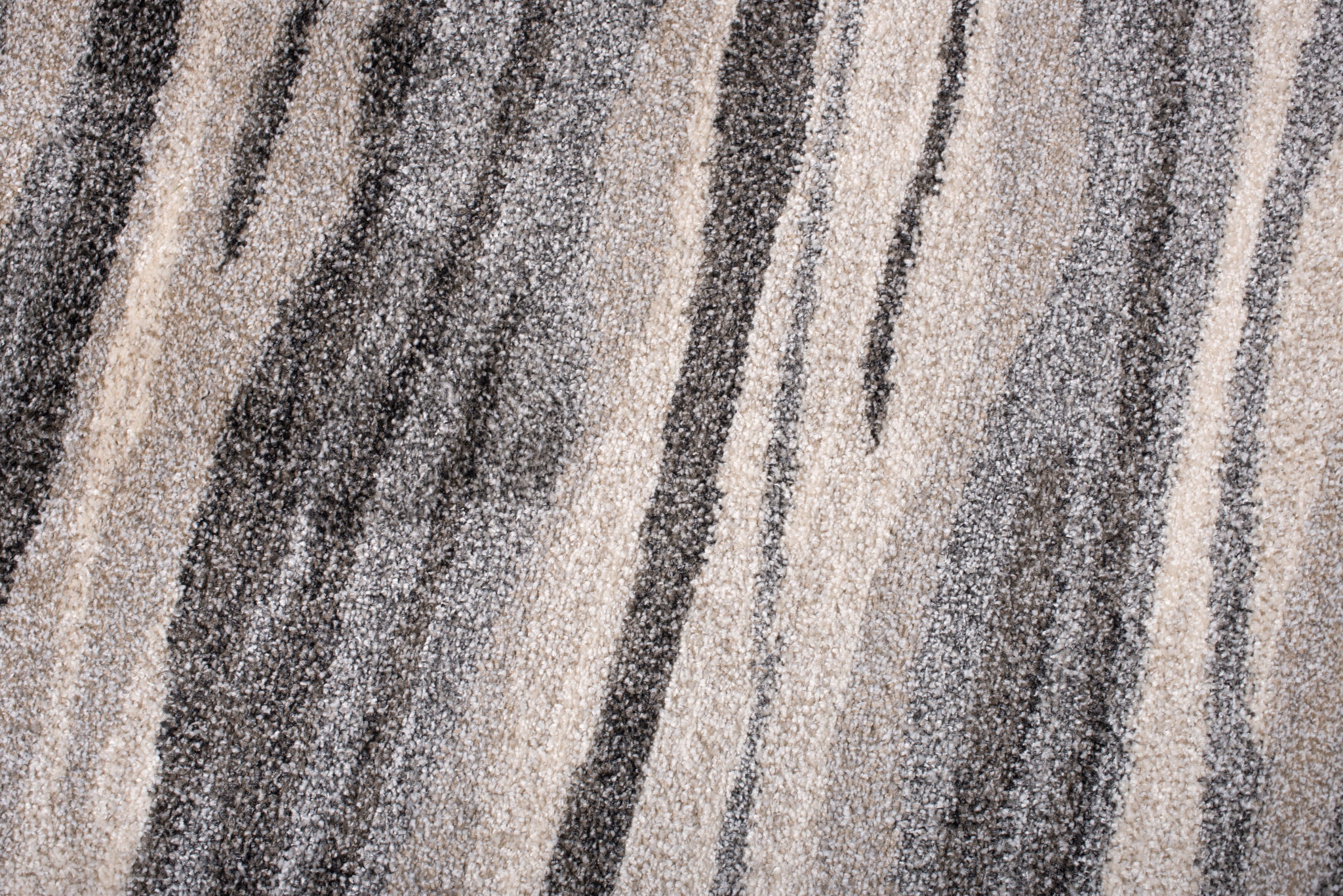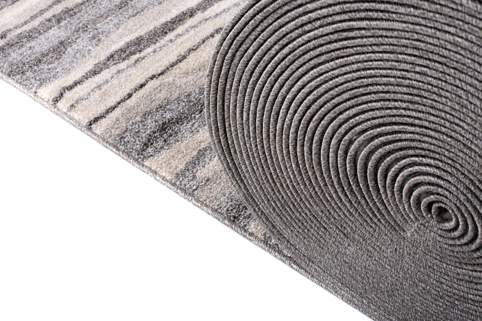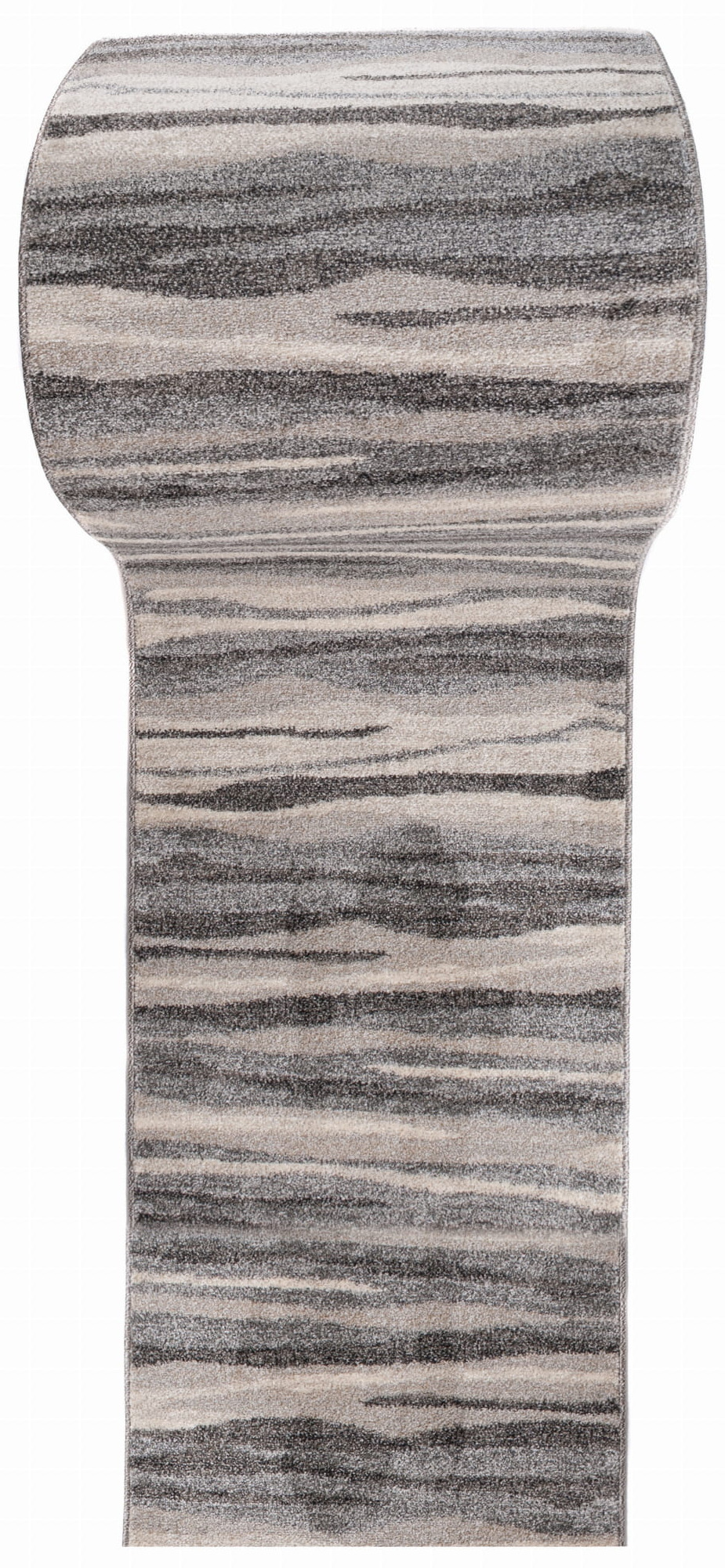 Szary chodnik wyróżniający się gęstym runem, wykonany z uszlachetnionego termicznie miękkiego włókna syntetycznego, które w dotyku przypomina wełnę. Posiada wysoką odporność na ścieranie i jest łatwy do utrzymania w czystości. Chodnik ten ma nowoczesny wzór w formie nieregularnych pasów.