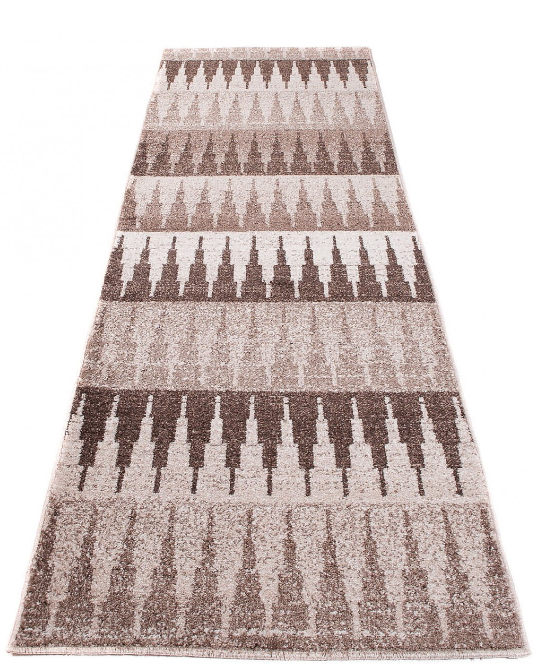 Chodnik wyróżnia się gęstym runem, wykonany jest z uszlachetnionego termicznie miękkiego włókna syntetycznego, które w dotyku przypomina wełnę, posiada wysoką odporność na ścieranie i jest łatwy do utrzymania w czystości. Na chodniku znajduje się nowoczesny wzór zachodzących na siebie zygzaków, w beżowej kolorystyce.