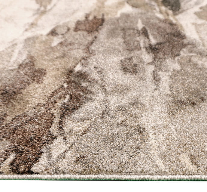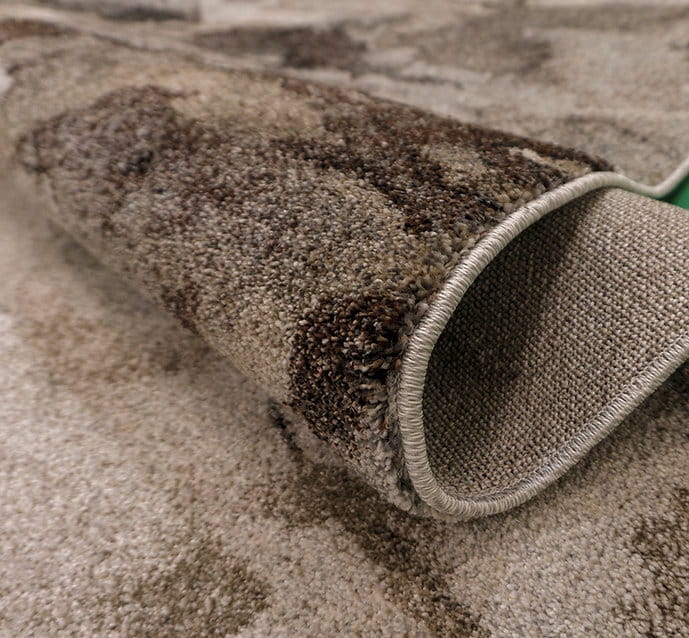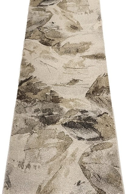Chodnik dywanowy Wenus to stylowy i elegancki dodatek do wnętrza, wykonany z wysokiej jakości, termicznie uszlachetnianej przędzy polipropylenowej. Jego nowoczesny, abstrakcyjny wzór w odcieniach beżu, brązu i szarości nawiązuje do naturalnych tekstur takich jak liście, dodając wnętrzu subtelnej elegancji.
