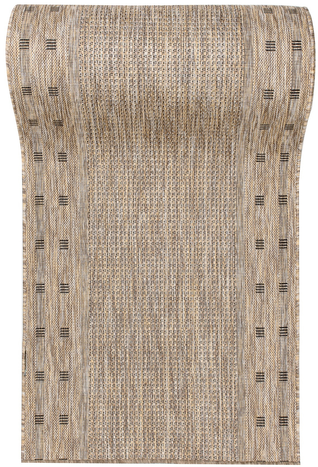 Praktyczny brązowy, chodnik płaskotkany o geometrycznych motywach, wykonany w technologii sznurkowej, idealny zarówno do wnętrz, jak i na zewnątrz. Odporny na wilgoć, odkształcenia i ścieranie, dzięki czemu zachowuje estetyczny wygląd przez długi czas. Łatwy w czyszczeniu i codziennej pielęgnacji - doskonały wybór do intensywnie użytkowanych przestrzeni.