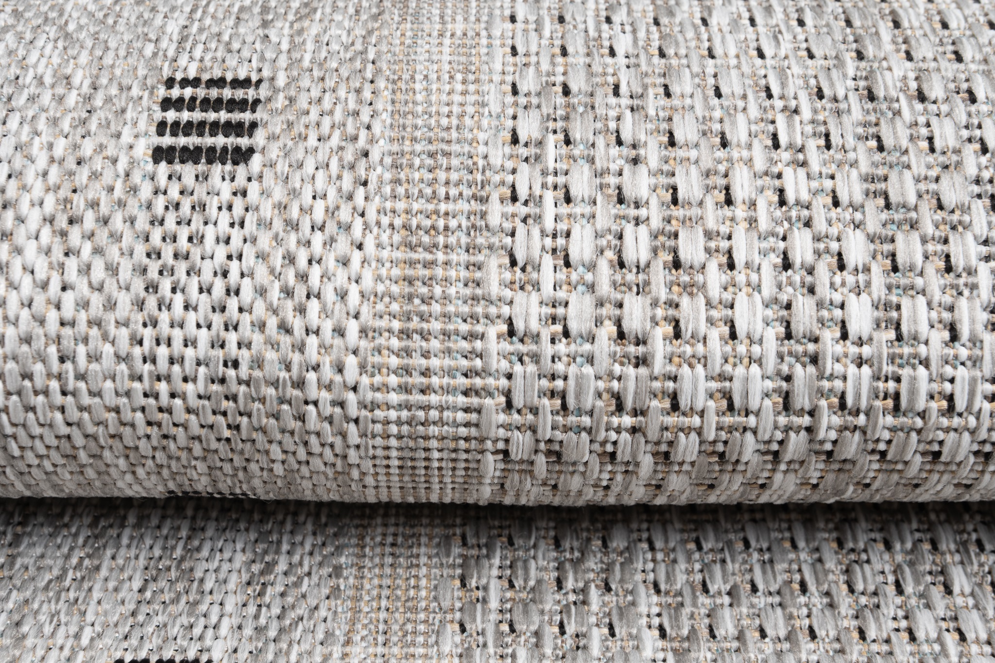 Praktyczny szary, chodnik płaskotkany o geometrycznych motywach, wykonany w technologii sznurkowej, idealny zarówno do wnętrz, jak i na zewnątrz. Odporny na wilgoć, odkształcenia i ścieranie, dzięki czemu zachowuje estetyczny wygląd przez długi czas. Łatwy w czyszczeniu i codziennej pielęgnacji - doskonały wybór do intensywnie użytkowanych przestrzeni.