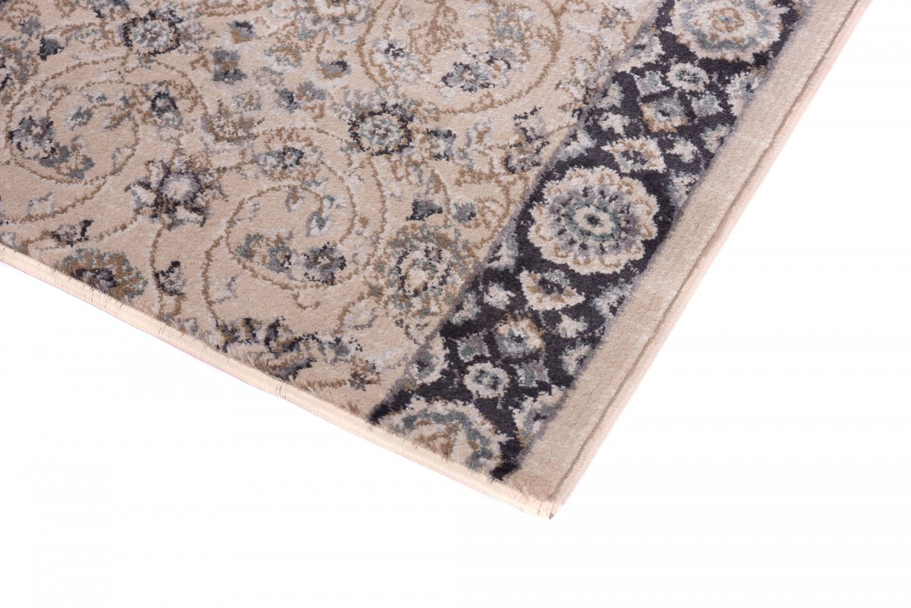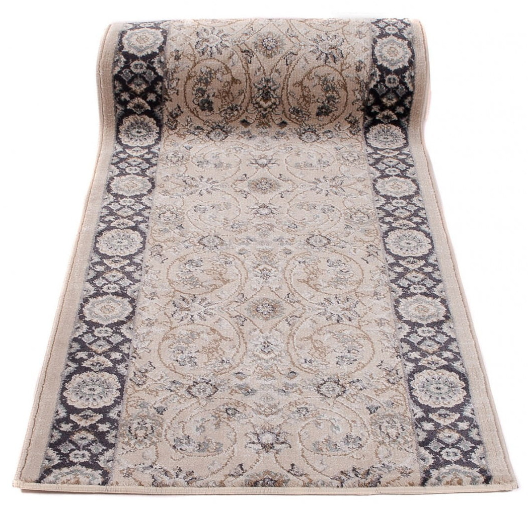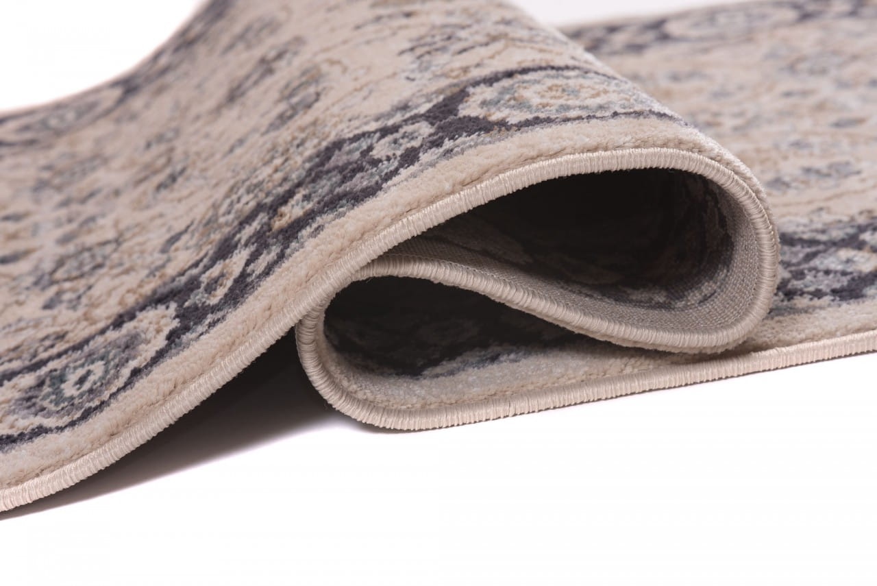 Chodnik w dominującym kolorze beżowym, z bogato zdobionym ornamentowym wzorem w stylu perskich kobierców. Wykonany jest z trwałej i odpornej na ścieranie przędzy syntetycznej, która imituje wełnę. Jest miękki, przyjemny w dotyku, a jednocześnie trwały i łatwy w czyszczeniu.