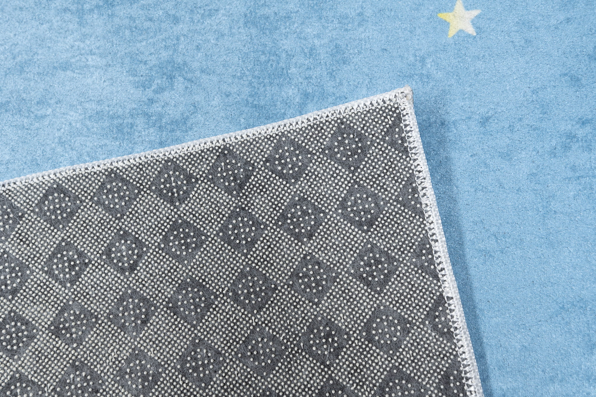 Ten dywan z kolekcji Emma to gwarancja radosnej zabawy z kosmicznymi przygodami na mięciutkim, przyjemnym w dotyku podłożu. Jest to dywan praktyczny i przyjazny dla alergików, nadaje się do prania w pralce. Niskie runo ułatwia czyszczenie, a antypoślizgowe wypustki na spodzie zapobiegają przesuwaniu się dywanu po podłodze, zwiększając bezpieczeństwo.