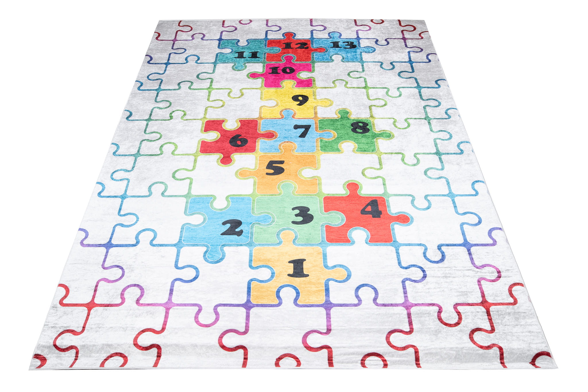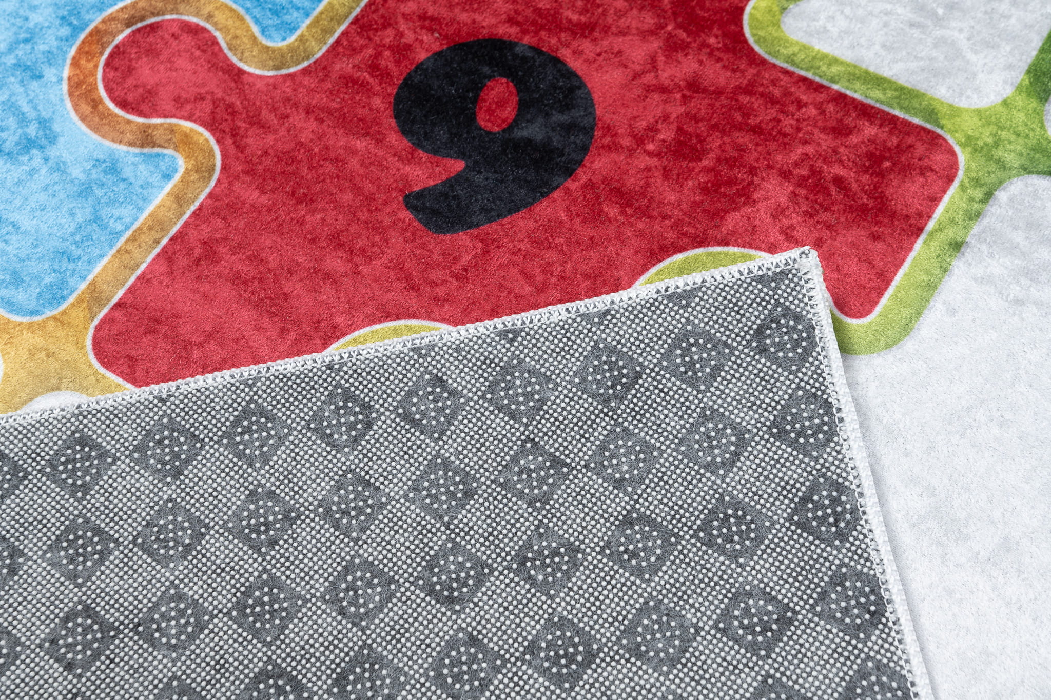 Ten dywan dziecięcy to kolorowy plac zabaw na podłodze! Gra w klasy zapewnia radosne chwile. Jest mięciutki i przyjazny dla alergików. Błyszczące, niewysokie runo nadaje mu elegancji. Można go prać w pralce, a antypoślizgowe wypustki zapewniają bezpieczną zabawę.