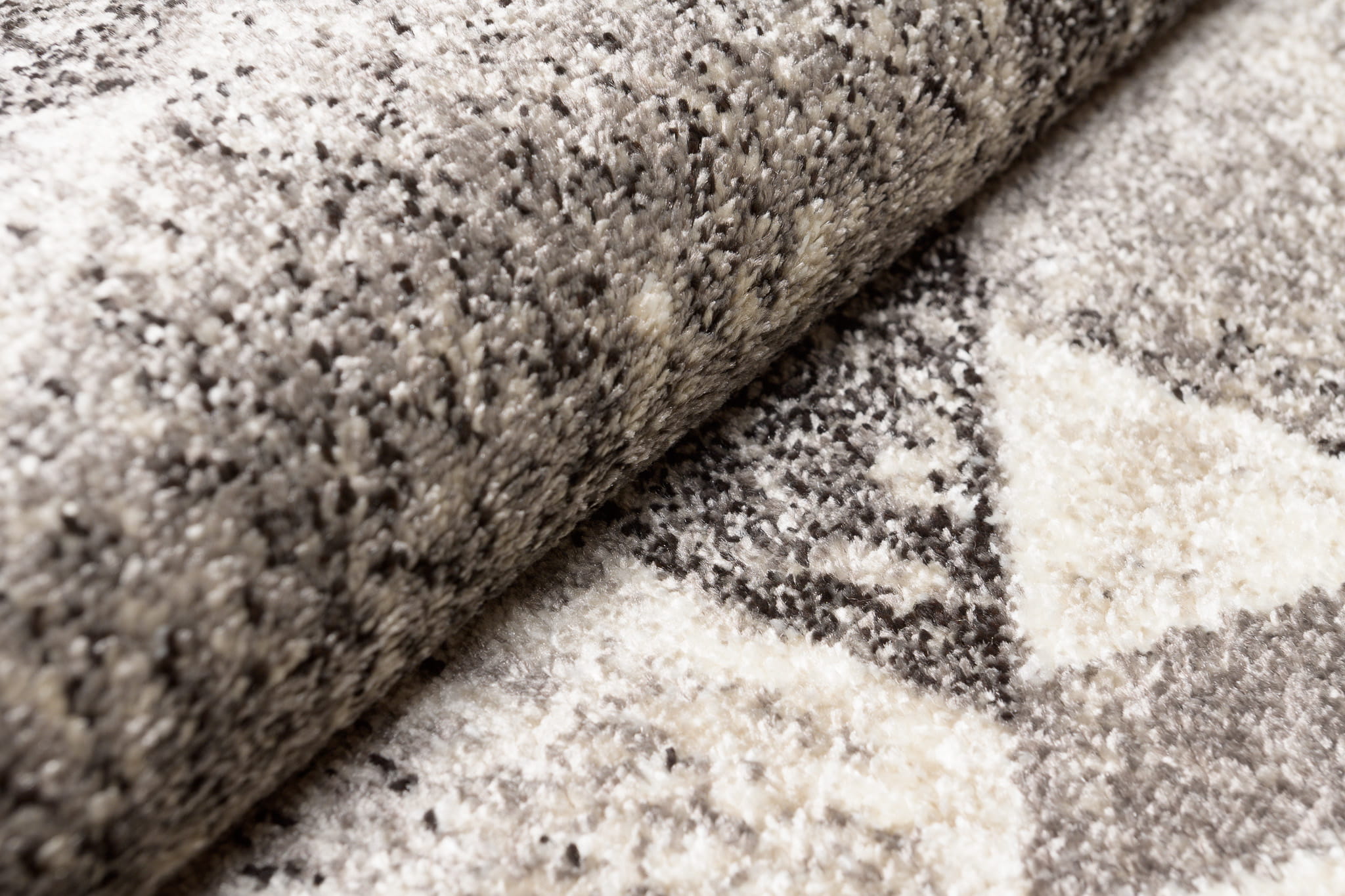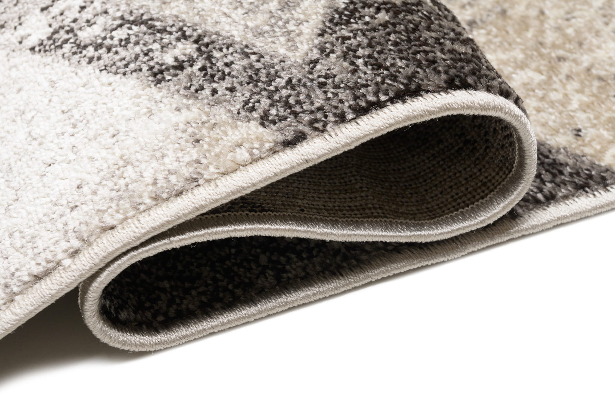 Dywan wyróżnia się miękkim, sprężystym runem przypominającym wełnę oraz geometrycznym wzorem z efektem 3d. Jest odporny na ścieranie i łatwy w utrzymaniu czystości.