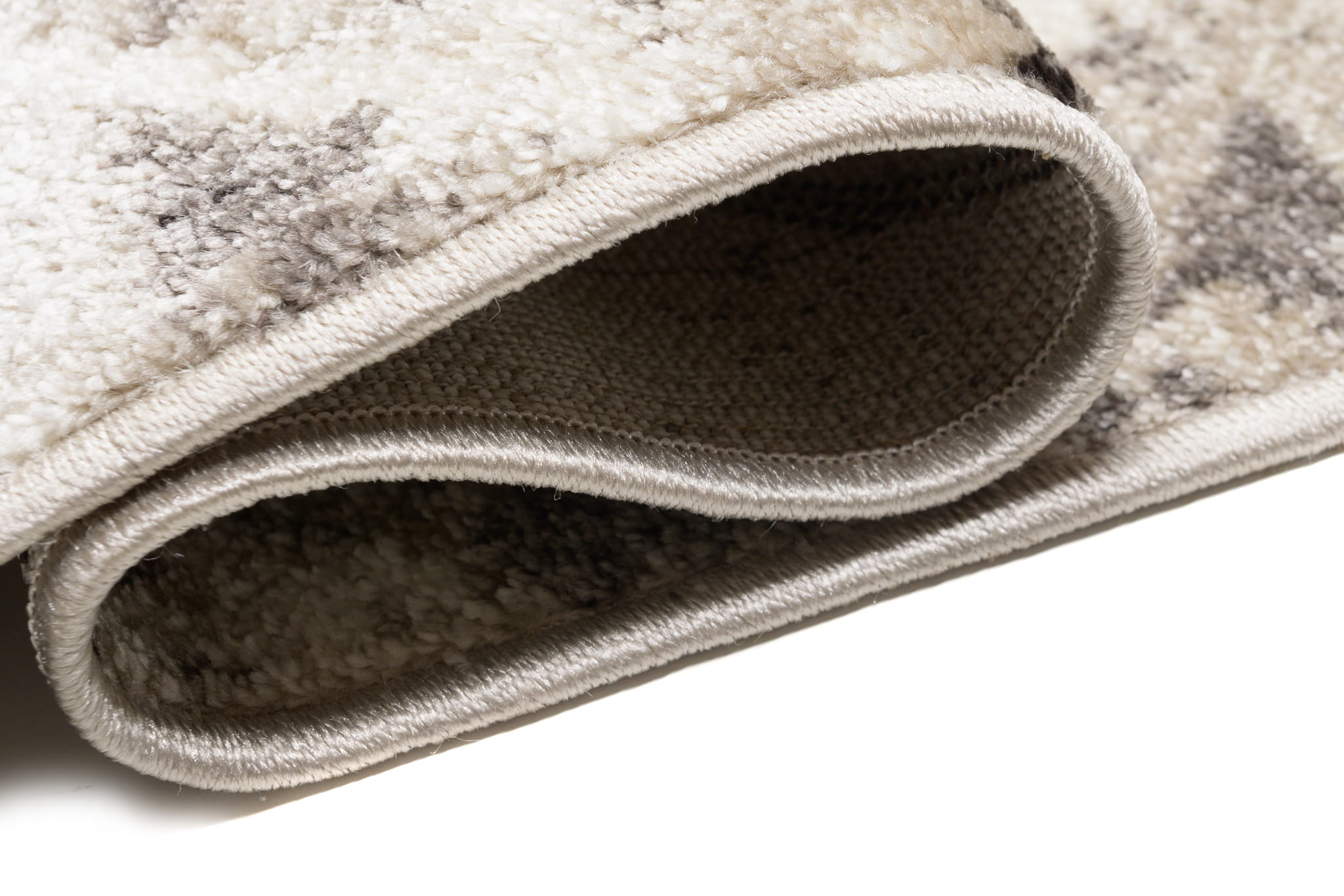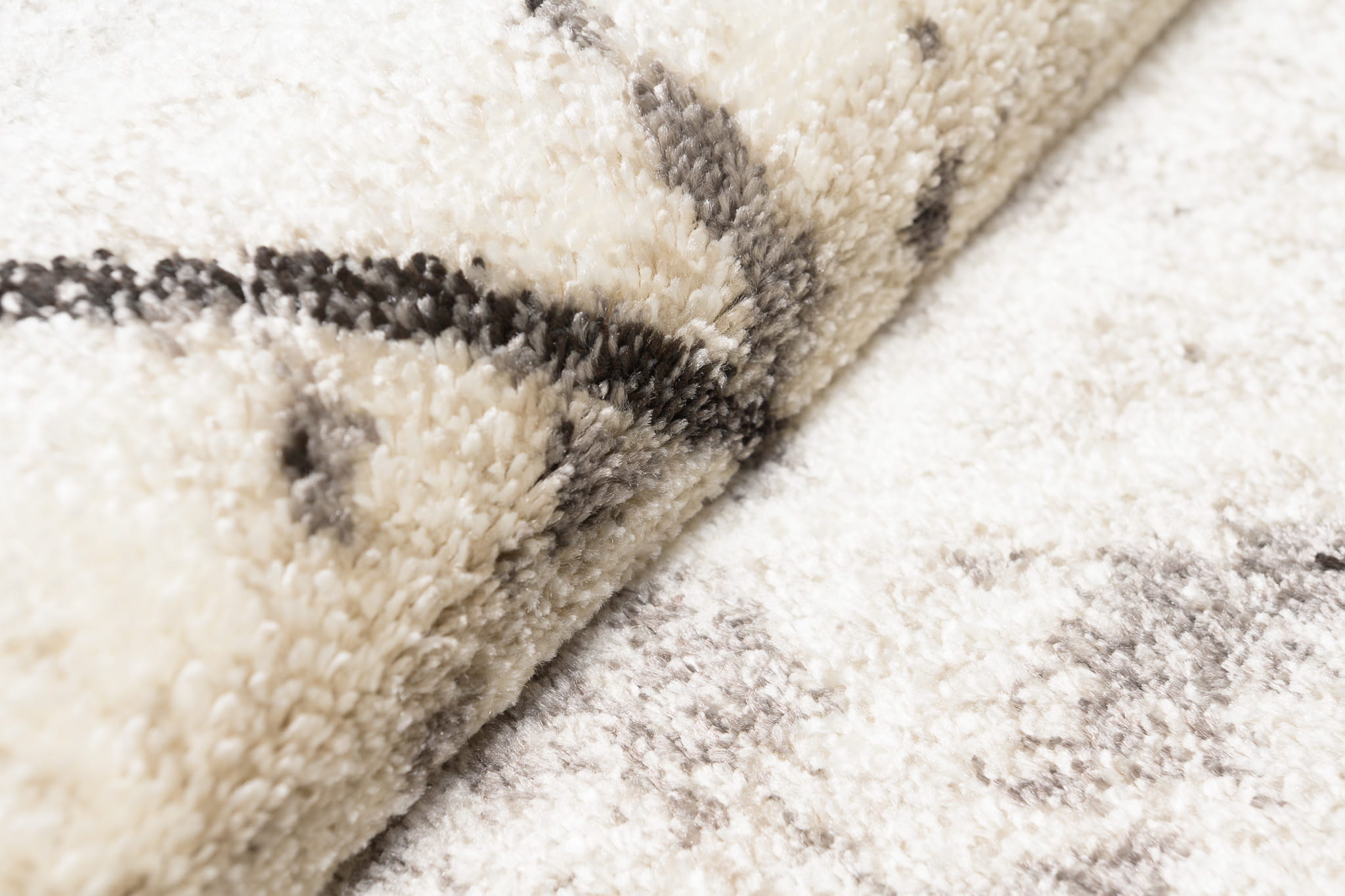 Dywan wyróżnia się miękkim, sprężystym runem przypominającym wełnę oraz geometrycznym wzorem z efektem 3d. Jest odporny na ścieranie i łatwy w utrzymaniu czystości.