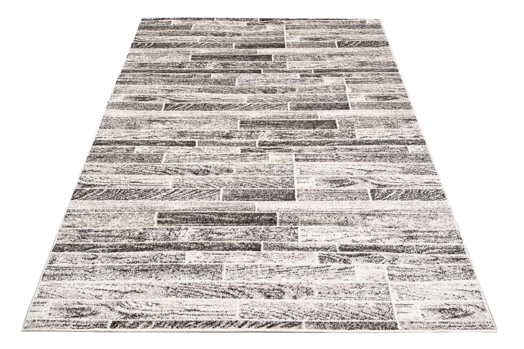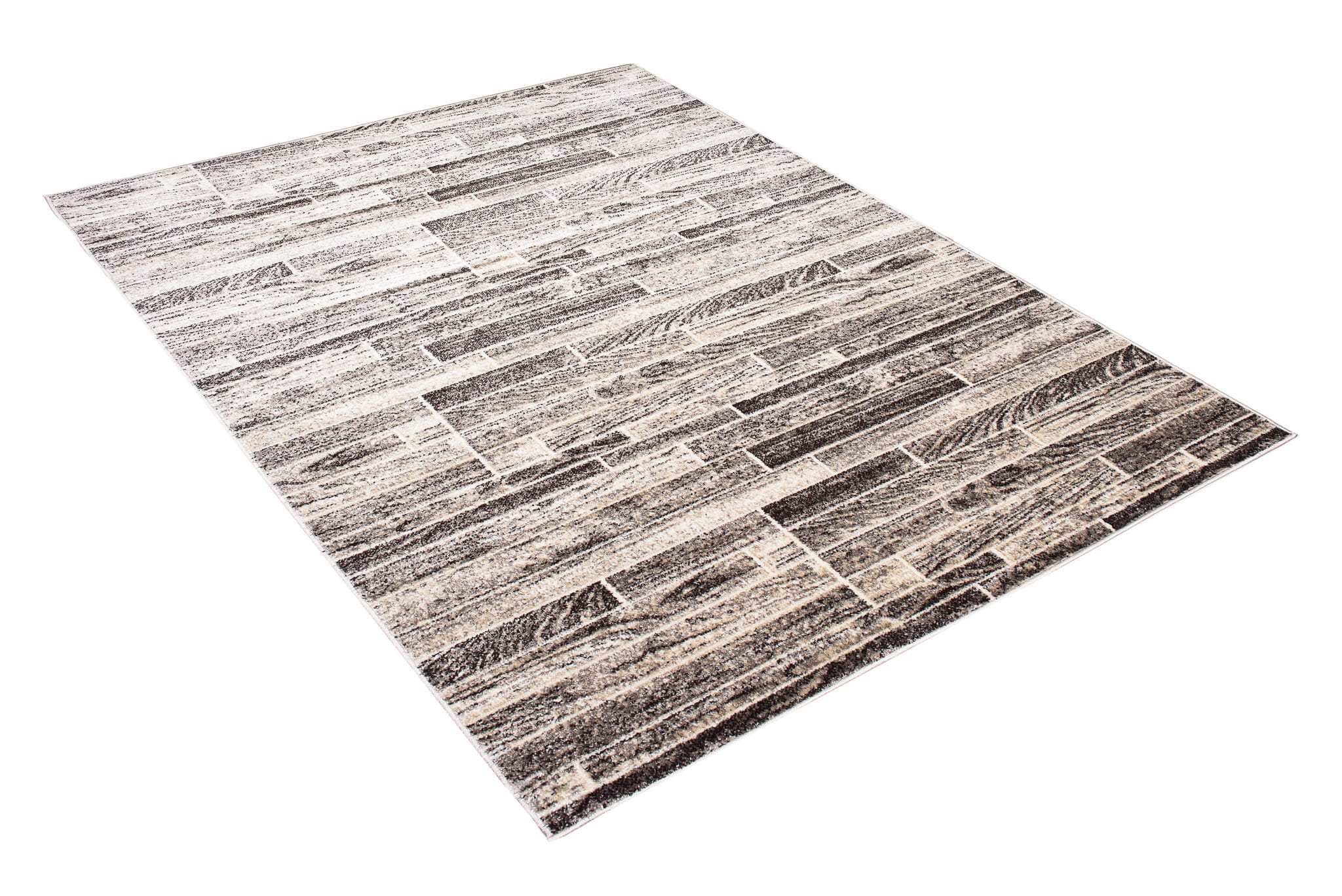 Dywan wyróżnia się miękkim, sprężystym runem przypominającym wełnę oraz wzorem imitującym deski. Jest odporny na ścieranie i łatwy w utrzymaniu czystości.