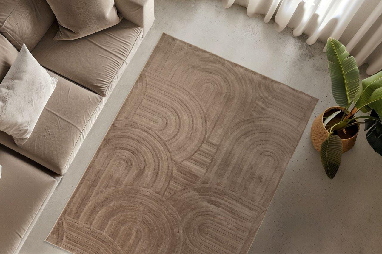 Komfortowy, miękki dywan z nowoczesnym geometrycznym wzorem. Zróżnicowana trzypoziomowa wysokość włosia nadaje mu trójwymiarowy efekt, wprowadzając głębię i dynamiczny charakter do wnętrza. Dywan zapewnia wyjątkową przyjemność użytkowania.