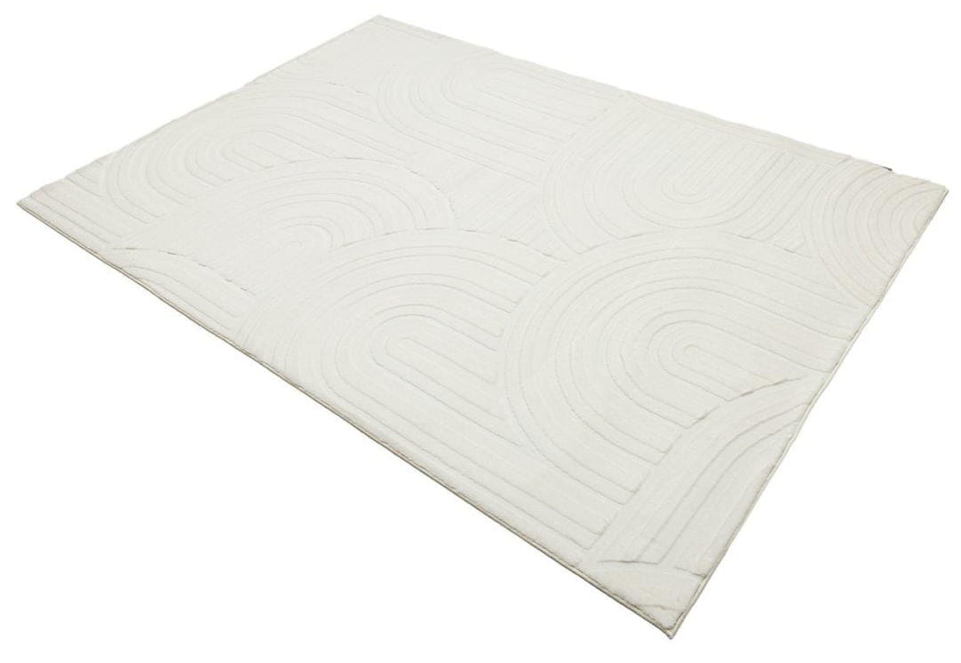 Komfortowy, miękki dywan z nowoczesnym geometrycznym wzorem. Zróżnicowana trzypoziomowa wysokość włosia nadaje mu trójwymiarowy efekt, wprowadzając głębię i dynamiczny charakter do wnętrza. Dywan zapewnia wyjątkową przyjemność użytkowania.