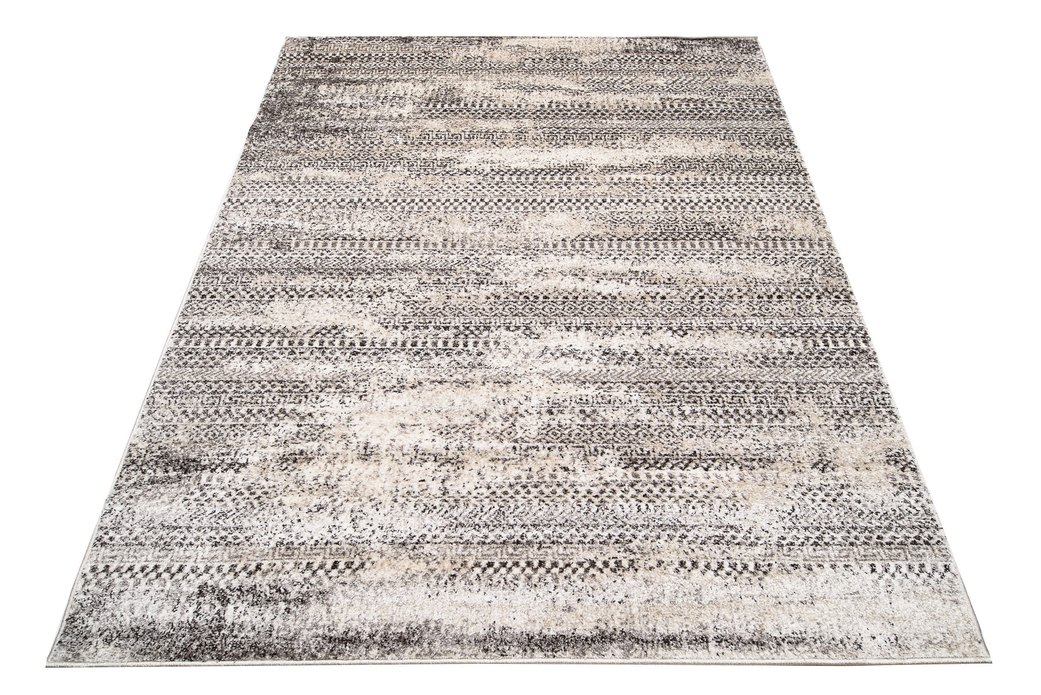 Dywan wyróżnia się miękkim, sprężystym runem przypominającym wełnę. Na przecieranym tle posiada wzór pasków. Jest on odporny na ścieranie i łatwy w utrzymaniu czystości.