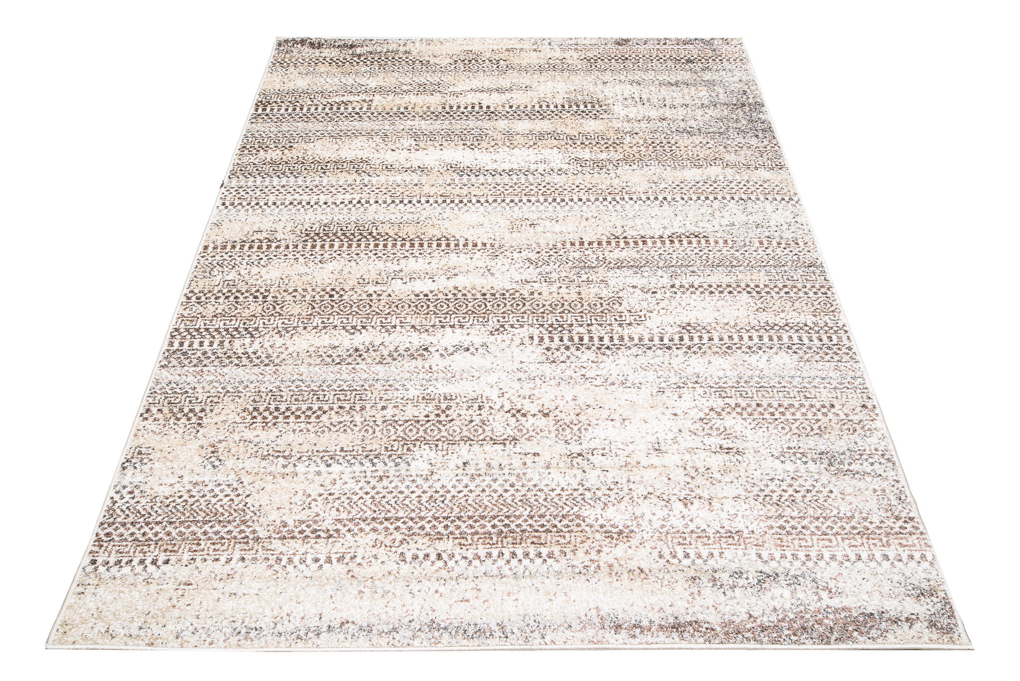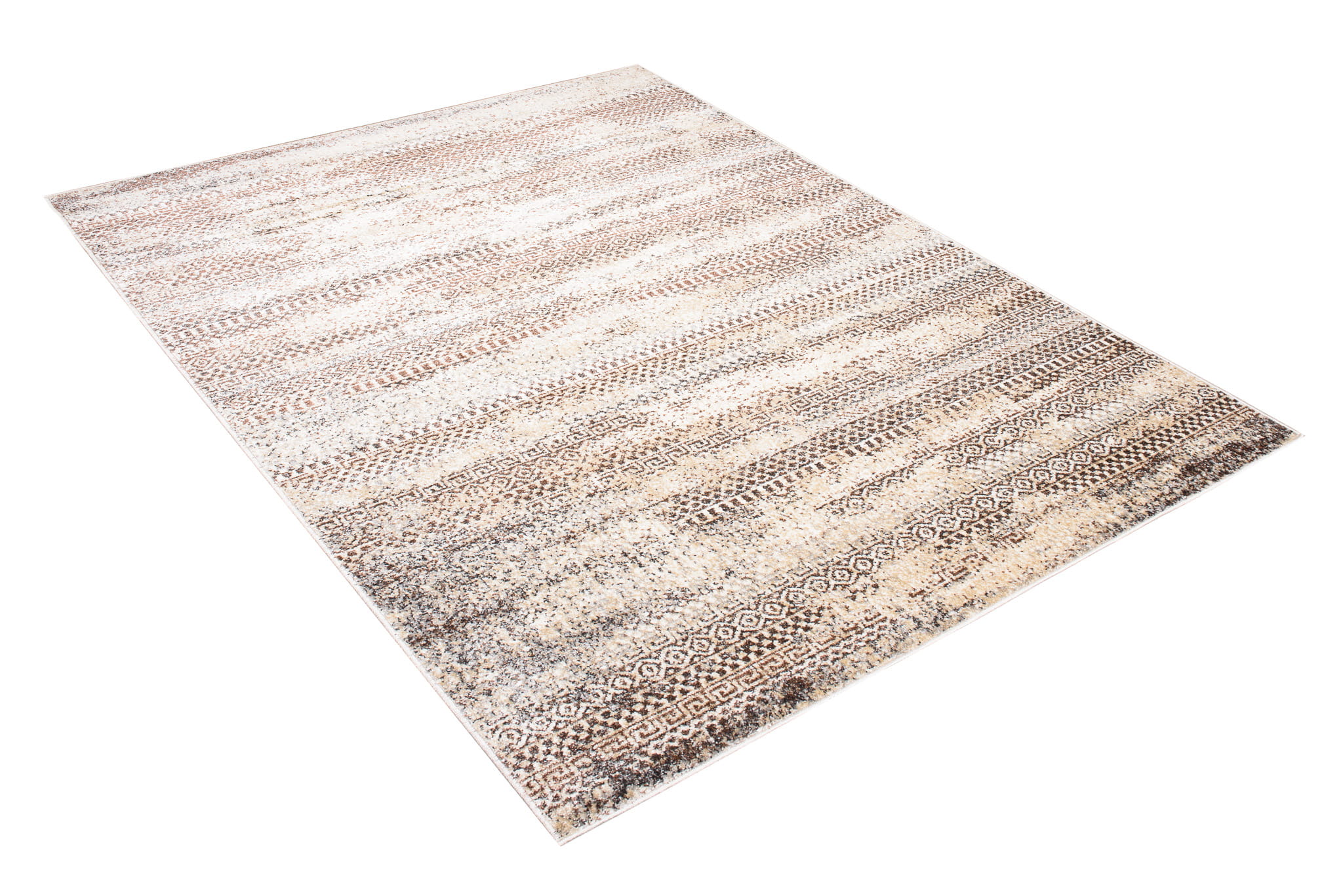Dywan wyróżnia się miękkim, sprężystym runem przypominającym wełnę. Na przecieranym tle posiada wzór pasków. Jest on odporny na ścieranie i łatwy w utrzymaniu czystości.