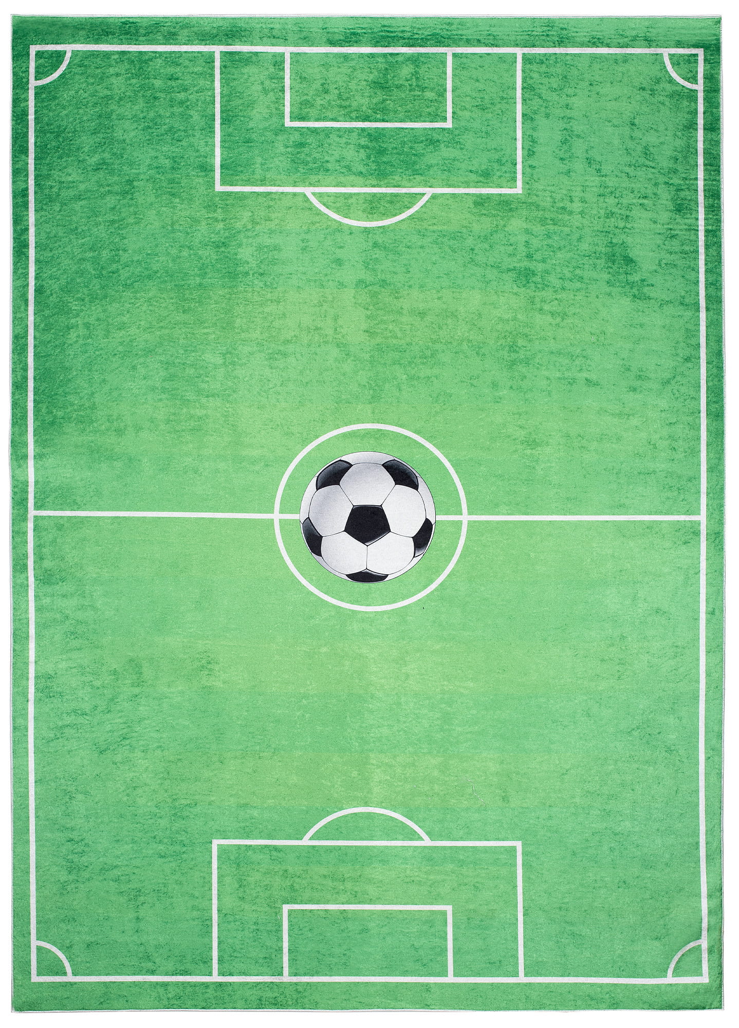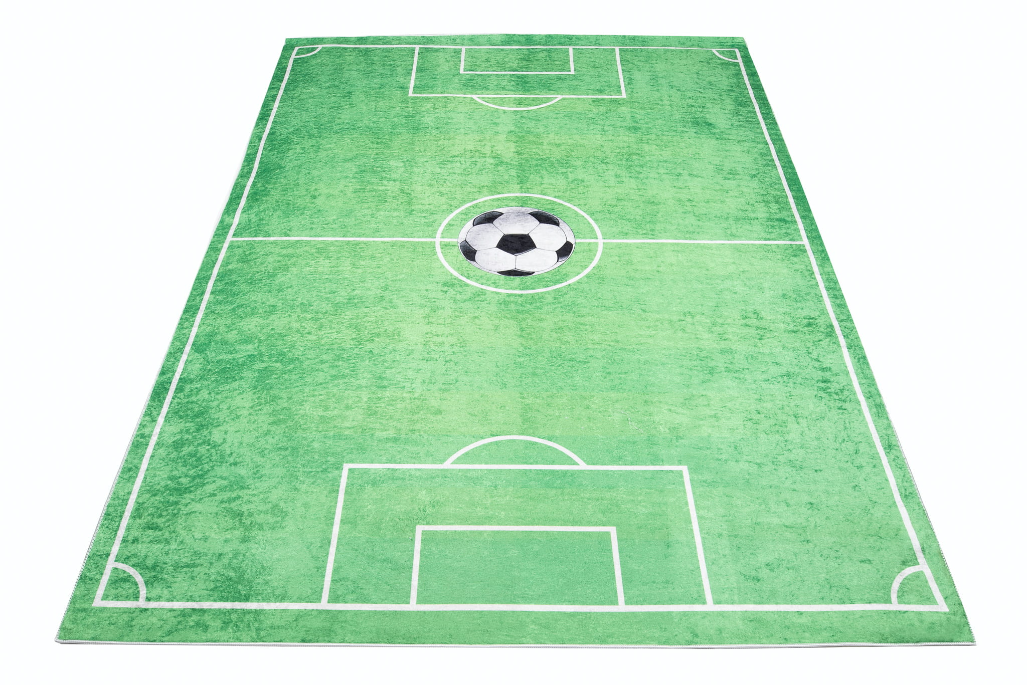 Dywan dla młodego sportowca - zielona murawa boiska na miękkim, przyjemnym podłożu. Dywan jest przyjazny dla alergików, może być prany w pralce. Antypoślizgowe wypustki na spodzie gwarantują stabilność, tworząc idealne miejsce do rozgrywki w bezpiecznym otoczeniu.