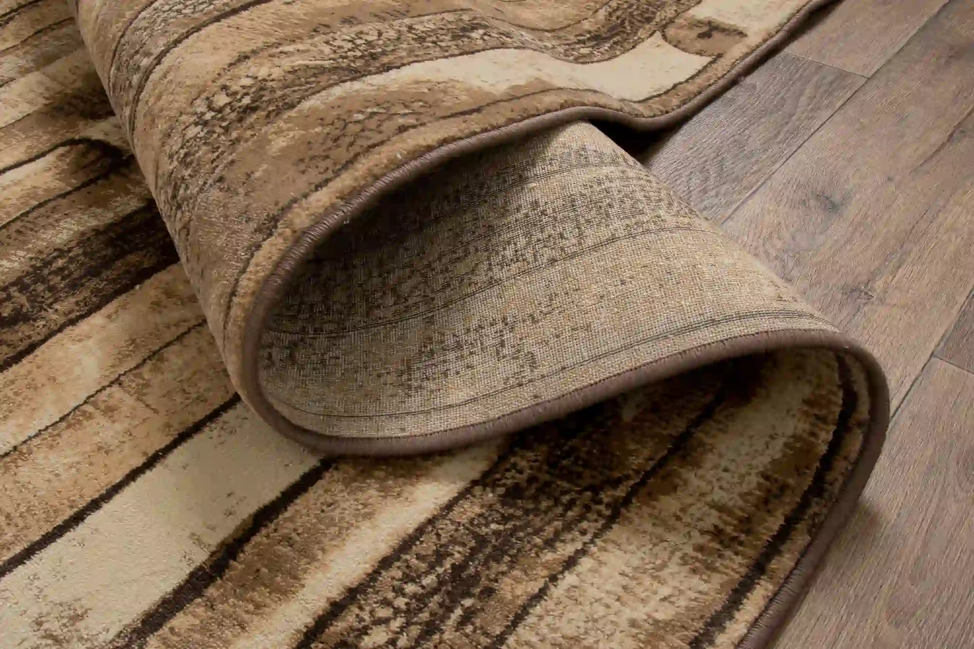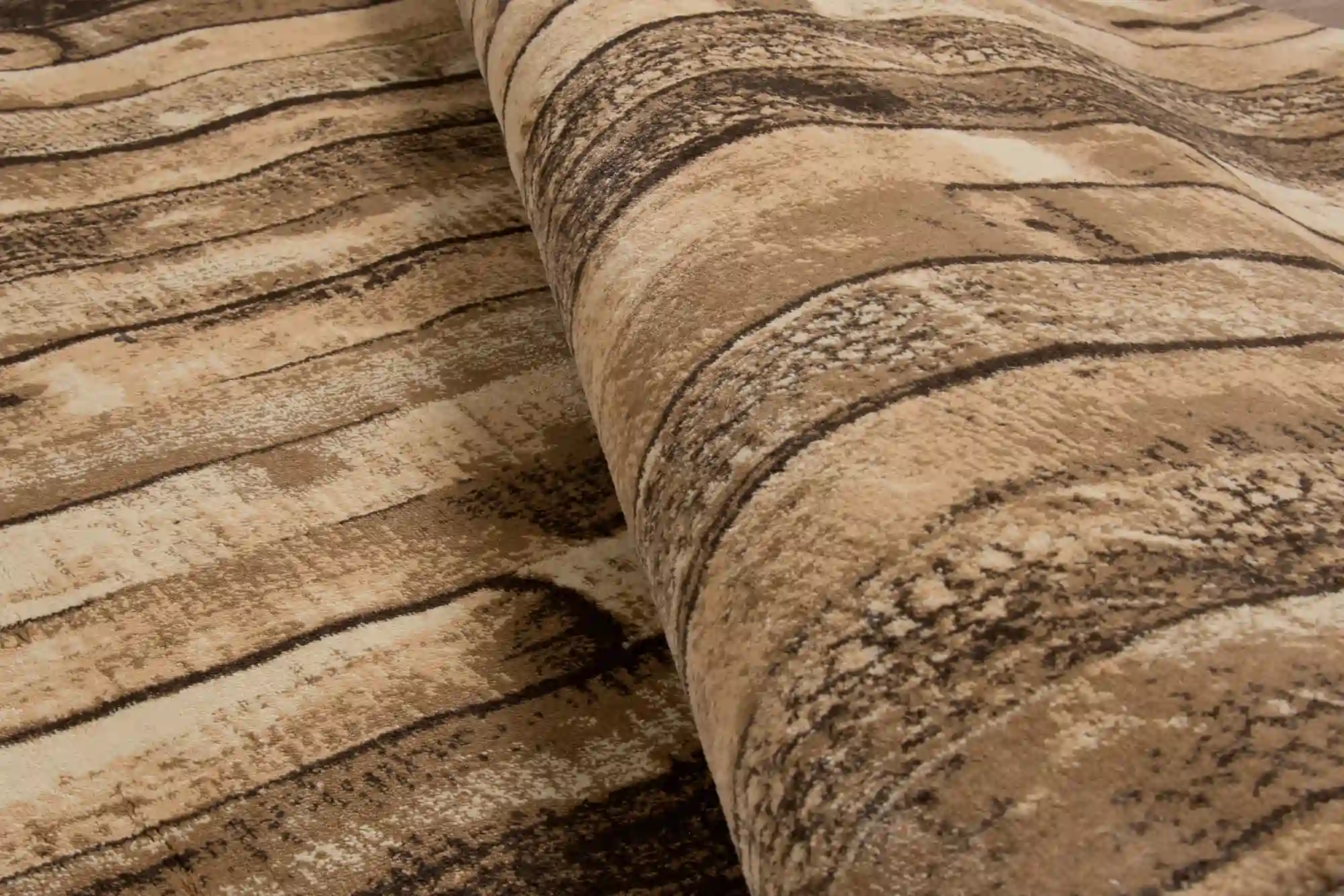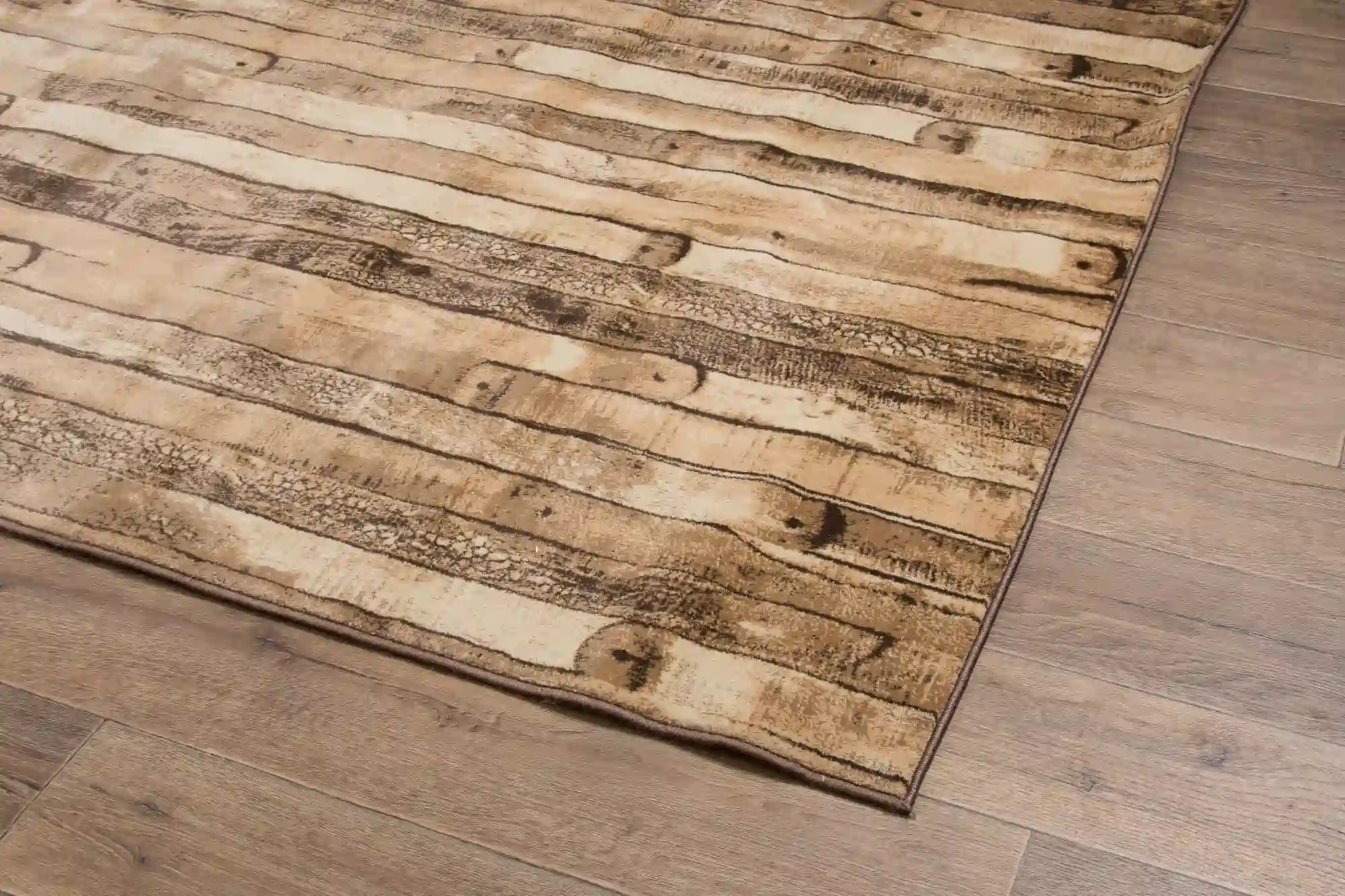 Dywan w odcieniach brązu z wzorem imitującym stare deski to stylowe i praktyczne rozwiązanie do każdego wnętrza. Wykonany z trwałego włókna syntetycznego, charakteryzuje się wysoką odpornością na zużycie oraz łatwością w utrzymaniu czystości.