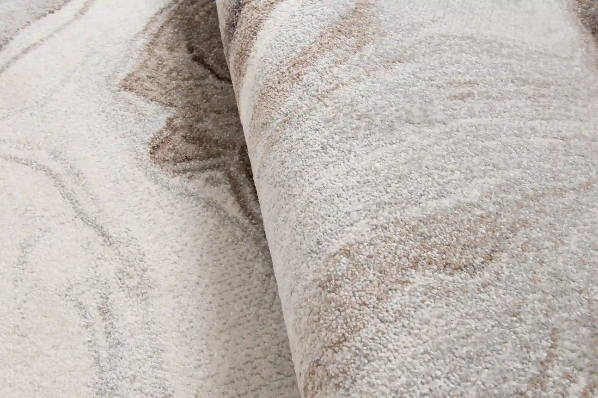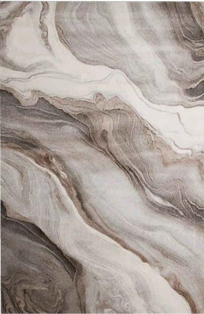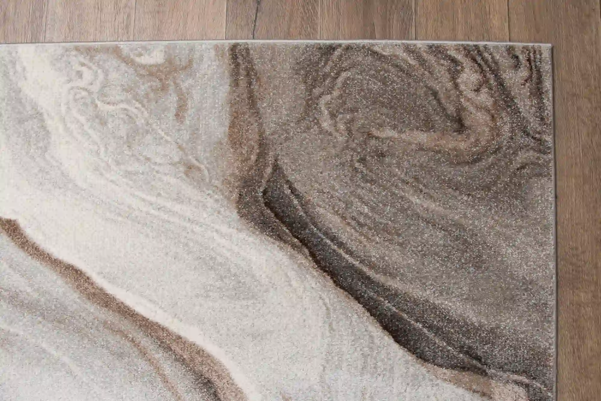 Dywan z nowoczesnym wzorem inspirowanym naturalnym marmurem. Wykonany z trwałego polipropylenu, jest odporny na zabrudzenia i łatwy w utrzymaniu, dzięki czemu stanowi stylowy i praktyczny element wystroju wnętrza.