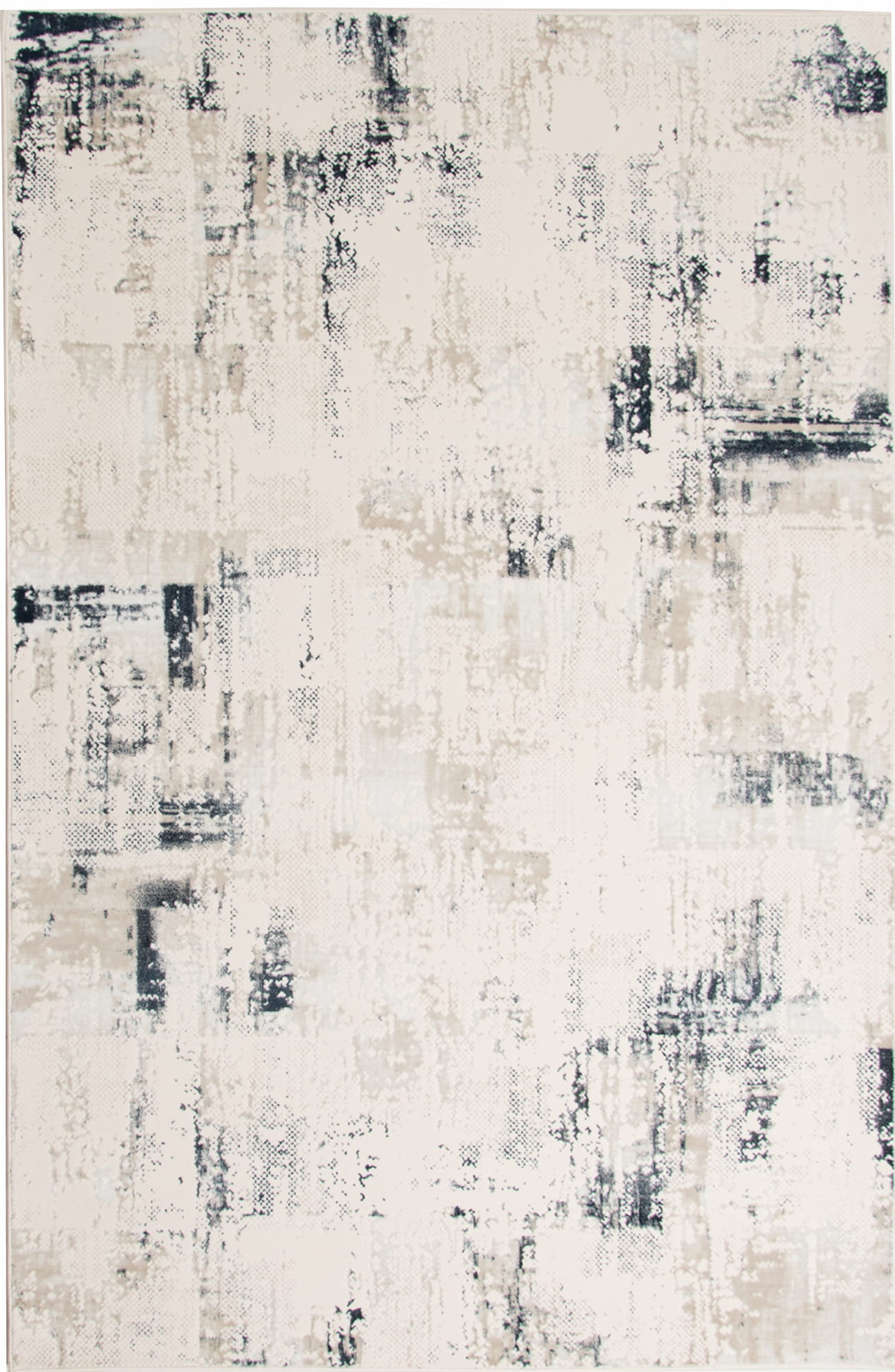 Nowoczesny, przecierany dywan w kolorystyce granatu i kremu, wykonany został z przędzy poliestrowej dzięki czemu jest miękki, błyszczący i przyjemny w dotyku. Dywan ten został wykonany techniką tkania charakteryzującą się dwiema wysokościami przez co osiągnięto trójwymiarowy efekt 3D.