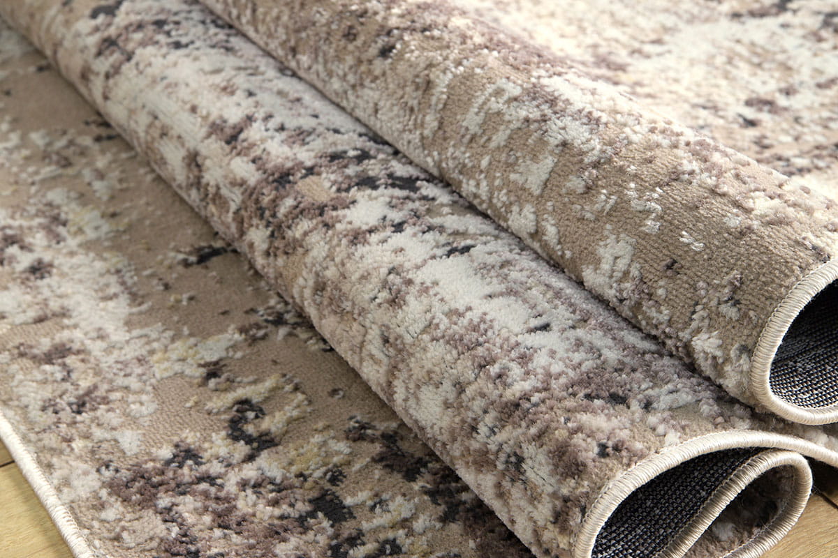 Przecierany dywan w stylu vintage w kolorystyce beżu będzie piękną ozdobą wnętrz. Wykonane są z włókien poliestrowych oraz polipropylenu, dzięki czemu otrzymujemy produkty trwałe i praktyczne w użytkowaniu, dodatkowo posiadają efekt połysku runa.