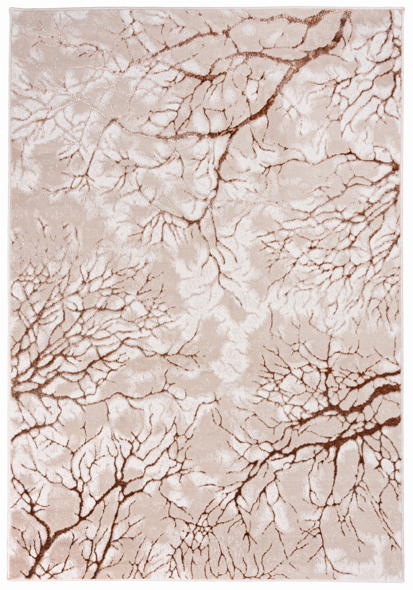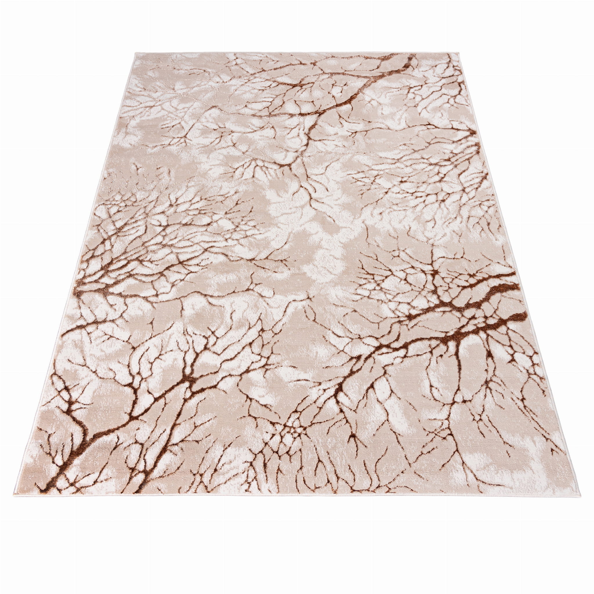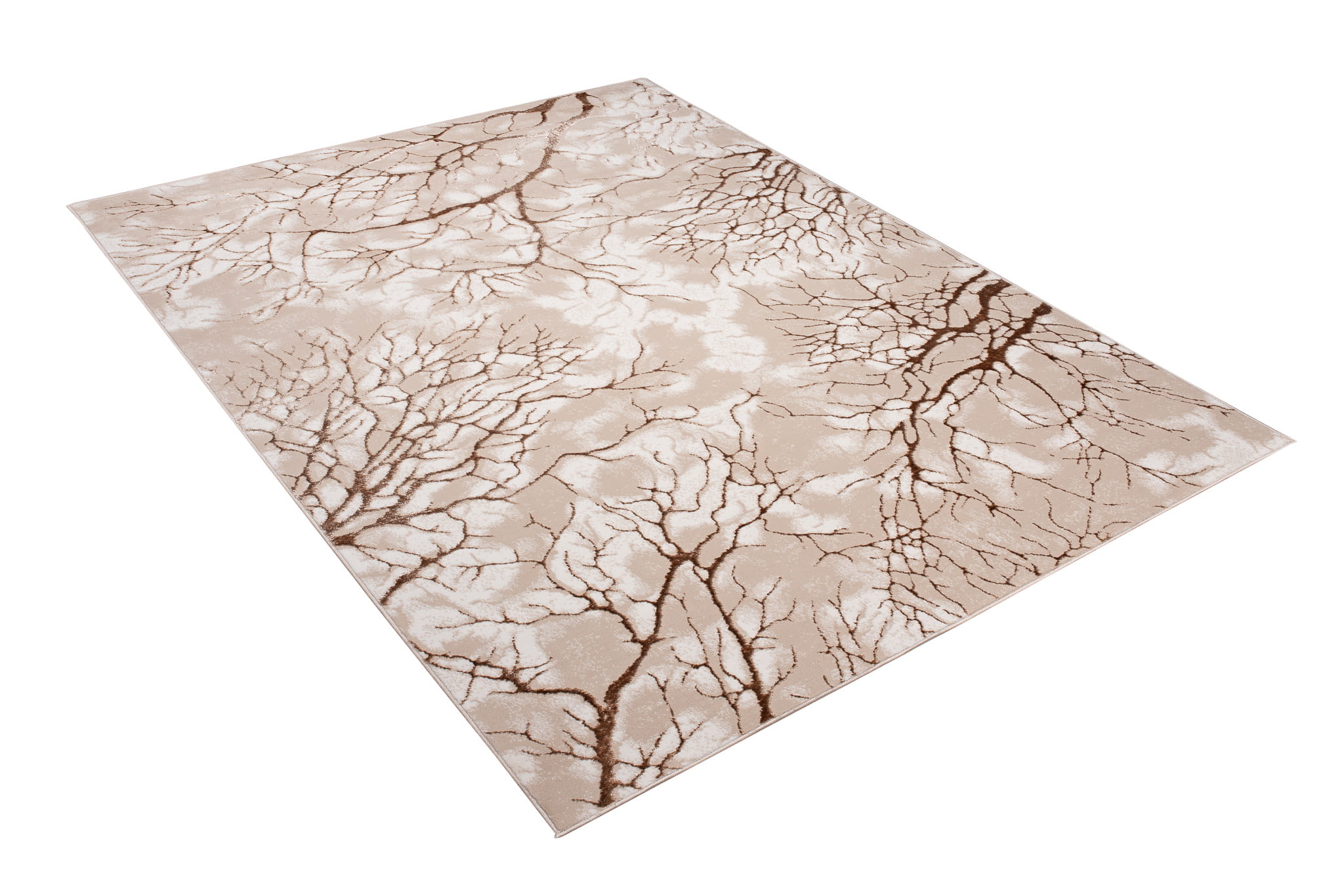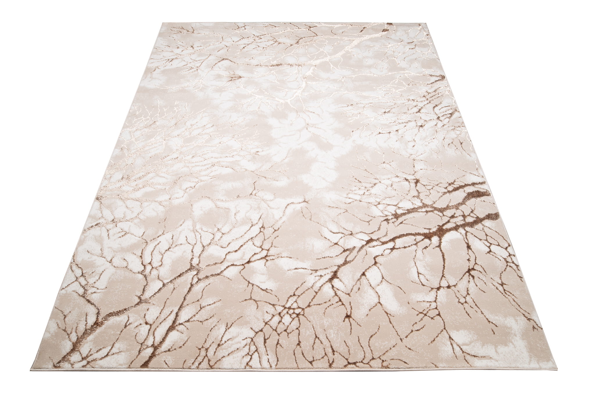 Dywan z krótkim włosem, w stylu nowoczesnym w kolorze beżowo-brązowym. Charakteryzuje się modnym wzorem nawiązującym do kształtu gałęzi. Dywan został wyprodukowany z włókien syntetycznych, jest trwały i łatwy w utrzymaniu czystości.