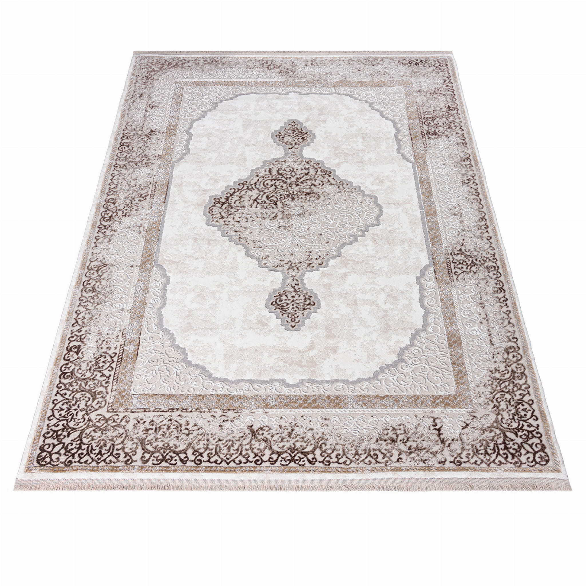 Dywan Sahara N764A, w tonacji kremowo brązowej, to dywan tradycyjny z wypukłym trójwymiarowym ornamentowym wzorem oraz eleganckimi frędzlami, który wprowadza do naszych wnętrz niepowtarzalny urok i styl.