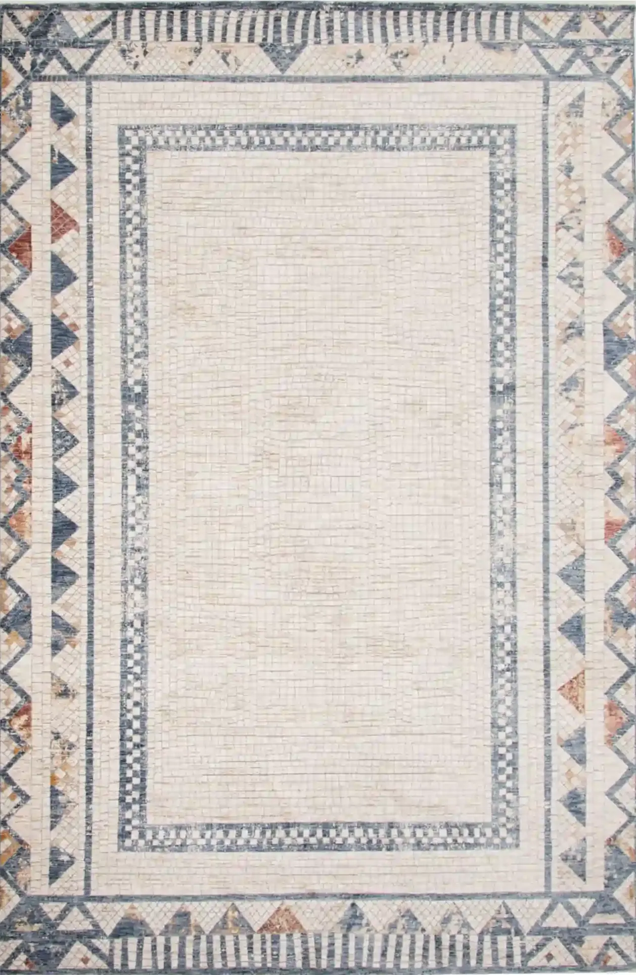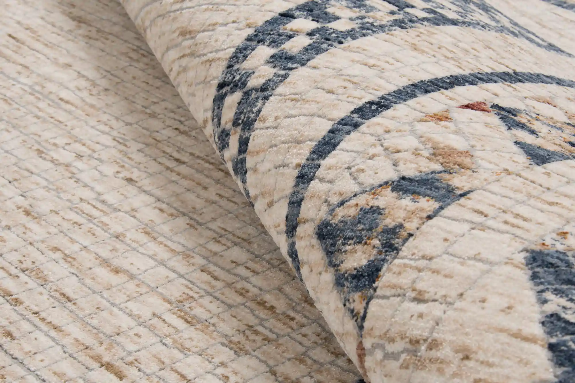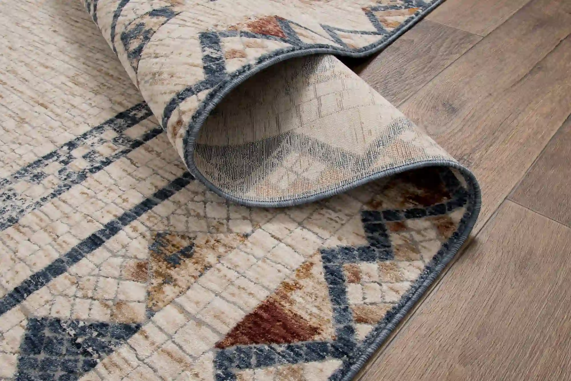 Stylowy dywan utrzymany w neutralnych barwach beżu ozdobiony delikatnym geometrycznym wzorem. Wykonany z wysokiej jakości włókien syntetycznych – odporny na zużycie, łatwy w pielęgnacji i przyjemny w dotyku.