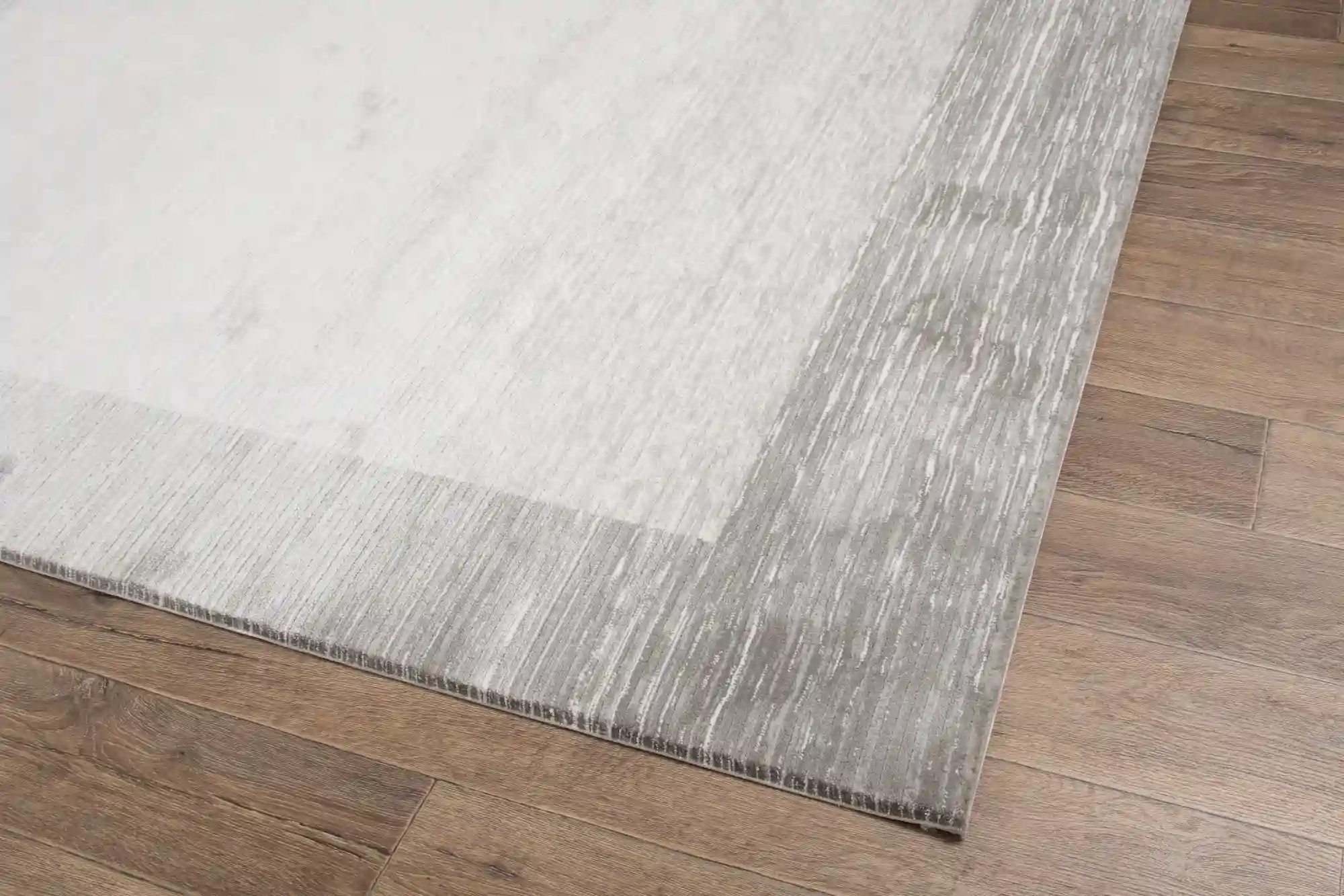 Nowoczesny dywan w odcieniu szarości, z ciemniejszą ramką biegnącą dookoła krawędzi. Wykonany z miękkiego, trwałego akrylu, idealny do salonu lub sypialni. Ramka tworzy eleganckie obramowanie, nadając dywanowi wyrafinowany wygląd.