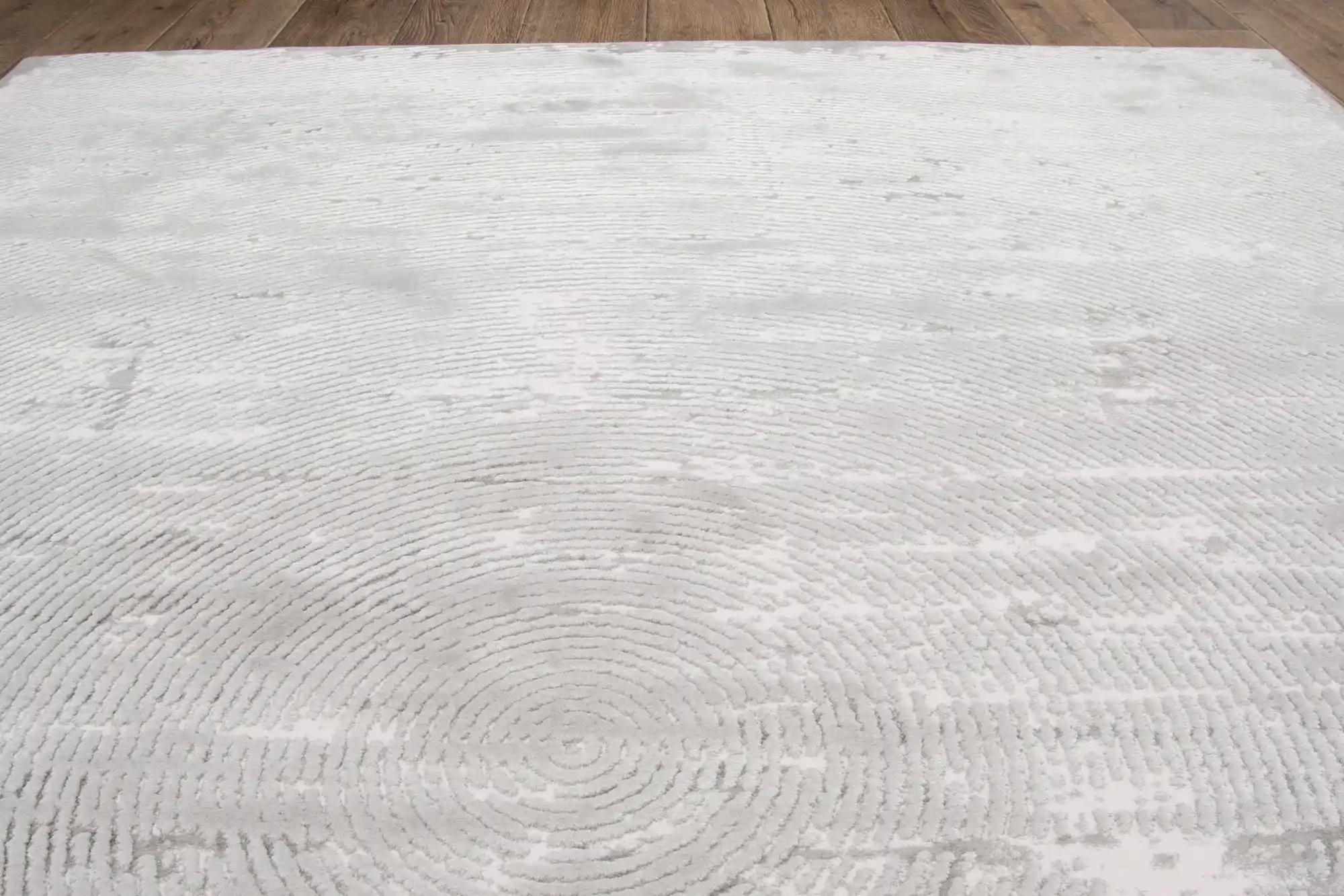 Dywan wykonany z miękkiego, a zarazem wyjątkowo trwałego akrylu doskonale sprawdzi się zarówno w salonie, jak i sypialni. Cała powierzchnia pokryta jest okręgami, które nadają mu unikalny i stylowy charakter. Neutralna kolorystyka w odcieniach szarości świetnie komponuje się z różnymi aranżacjami wnętrz.