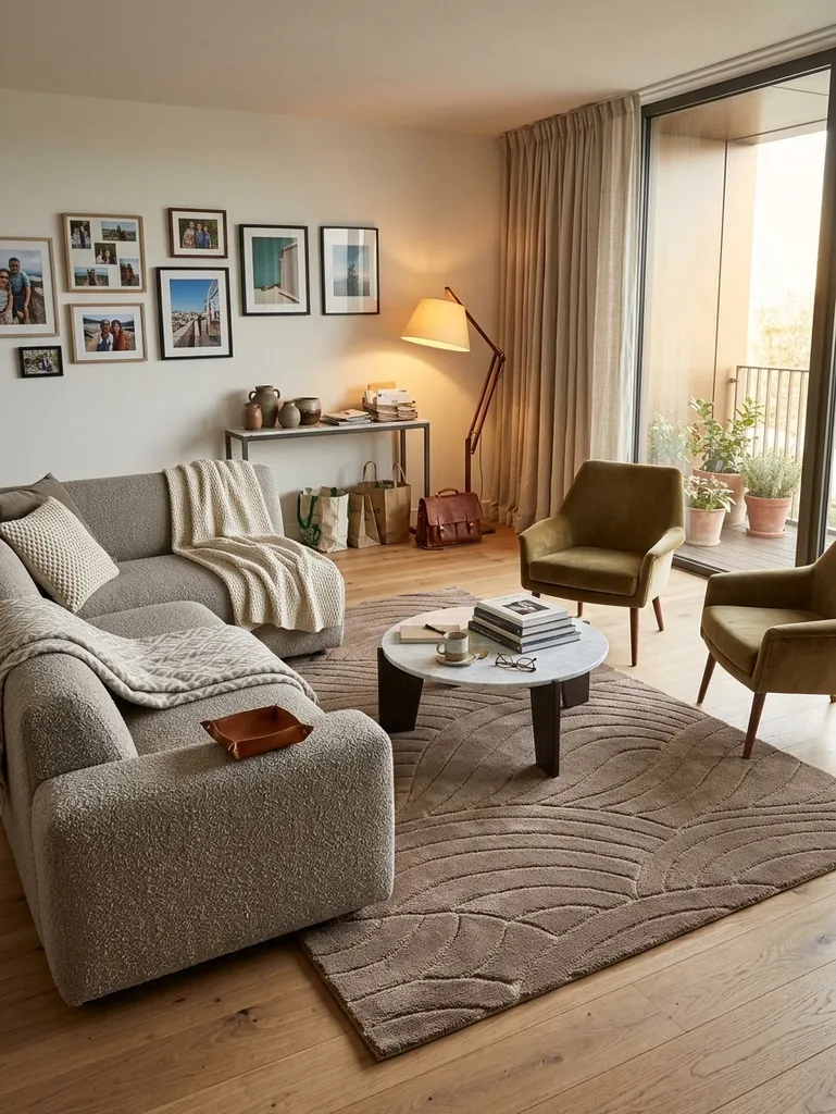 Dywan w odcieniach brązu, ozdobiony nowoczesnym geometrycznym wzorem o subtelnym efekcie 3D, uzyskanym dzięki delikatnemu wycinaniu runa. Wykonany z wysokiej jakości włókien syntetycznych w połączeniu z płaską strukturą sizalu, łączy w sobie estetykę z wyjątkową trwałością.