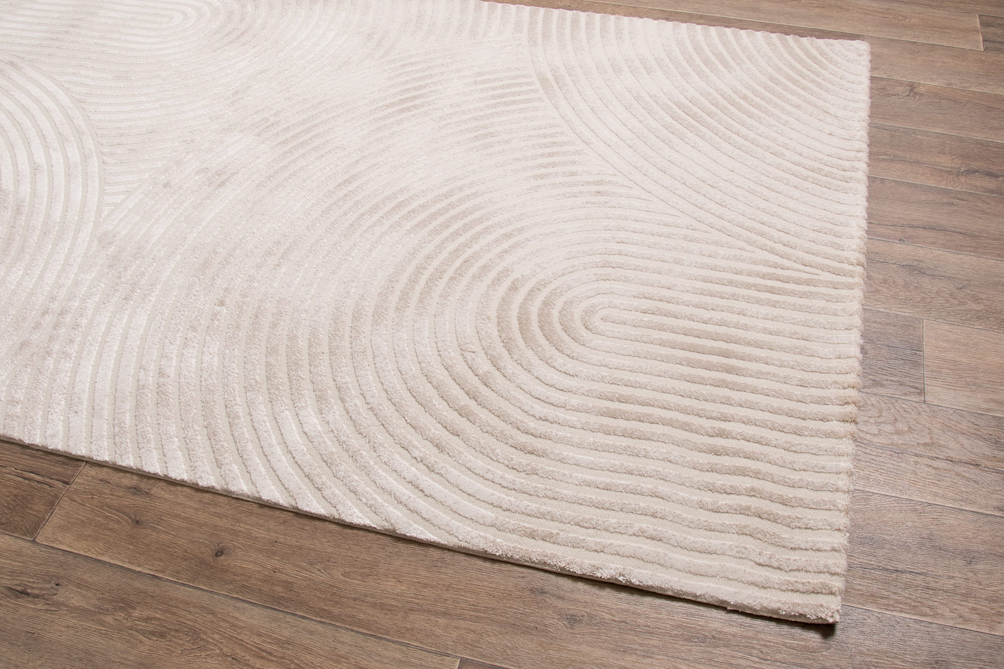 Wzór przypominający geometryczne rysunki na piasku w japońskich ogrodach nada wnętrzu orientalny charakter. Odporność na ścieranie i plamy sprawia, że jest on łatwy w utrzymaniu. Gęste, przyjemne w dotyku runo posiada przestrzenną strukturę nadającą trójwymiarowy efekt.