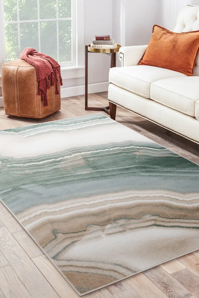 Dywan został wykonany z przędzy polipropylenowej więc jest bardzo łatwy w utrzymaniu czystości. Krótkie runo jest praktyczne nawet wówczas, gdy w domu zamieszkują czworonogi. Wzór inspirowany marmurem nadaje wnętrzu nowoczesny i dynamiczny charakter.