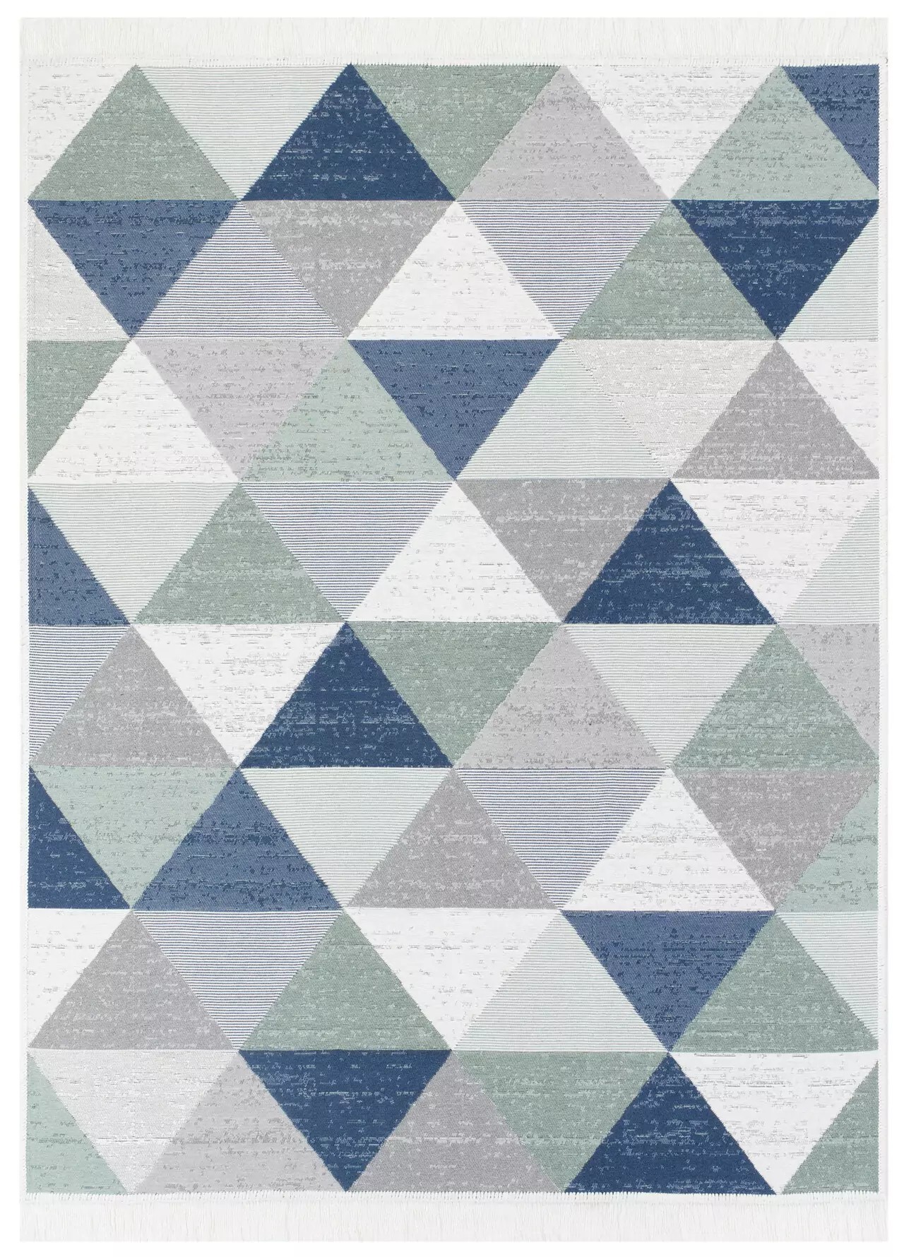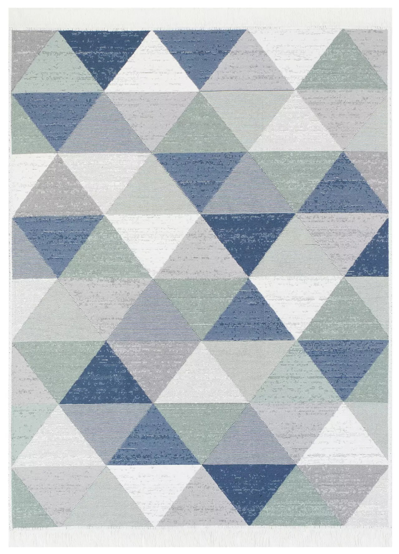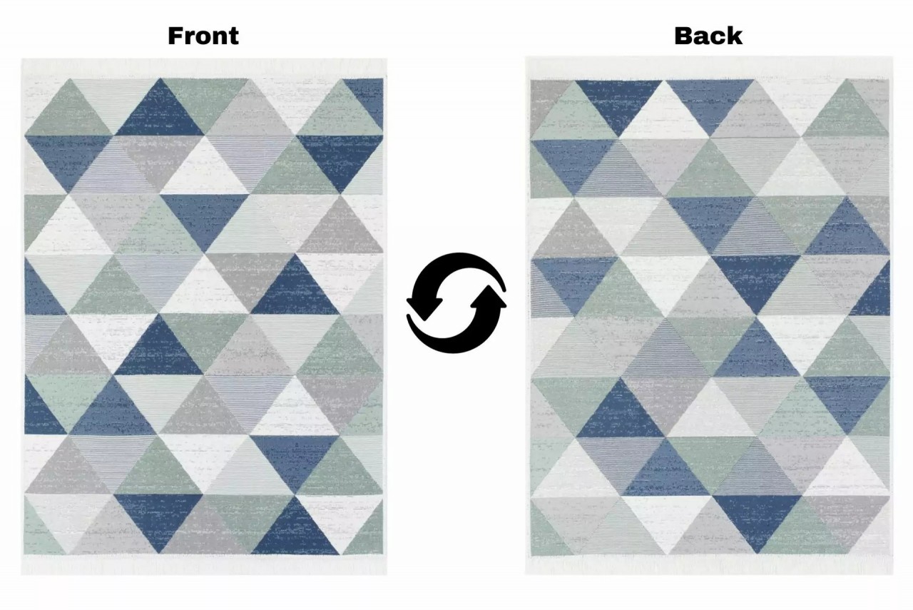 Dywan dwustronny geometria Kanuni Azteca 2709 szaro-niebieski