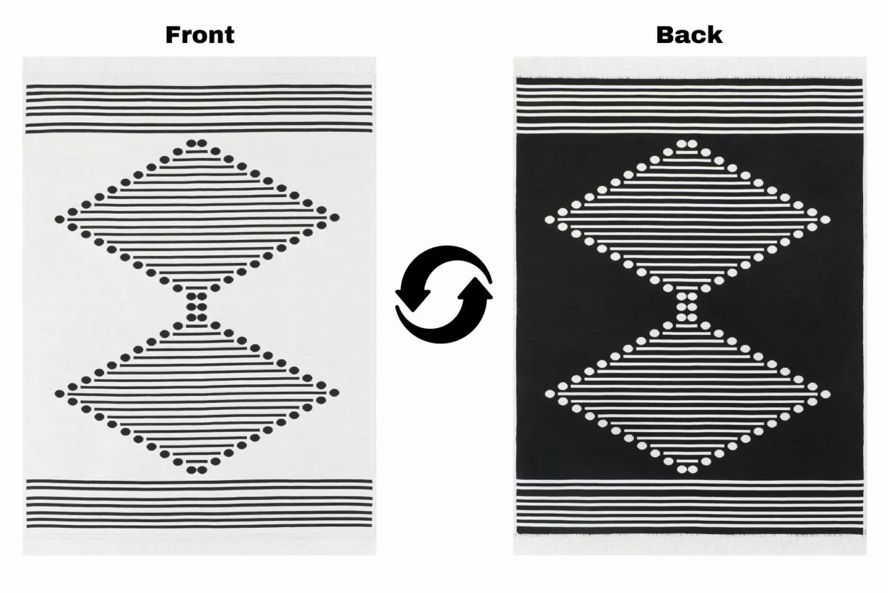 Dywan dwustronny geometria Kanuni Azteca 2715 biało-czarny