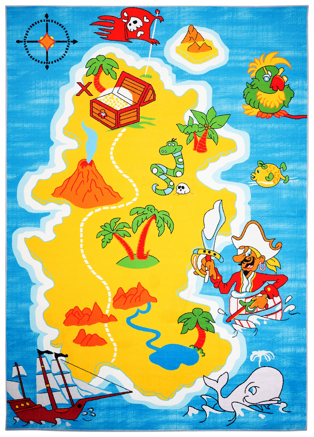 Dywan dziecięcy dla małego poszukiwacza przygód, z nadrukowanym motywem wesołej wyspy zapewnia kreatywną zabawę. Wykonany z trwałego, miękkiego materiału, jest bezpieczny i idealny do rozwijania wyobraźni oraz umiejętności motorycznych.