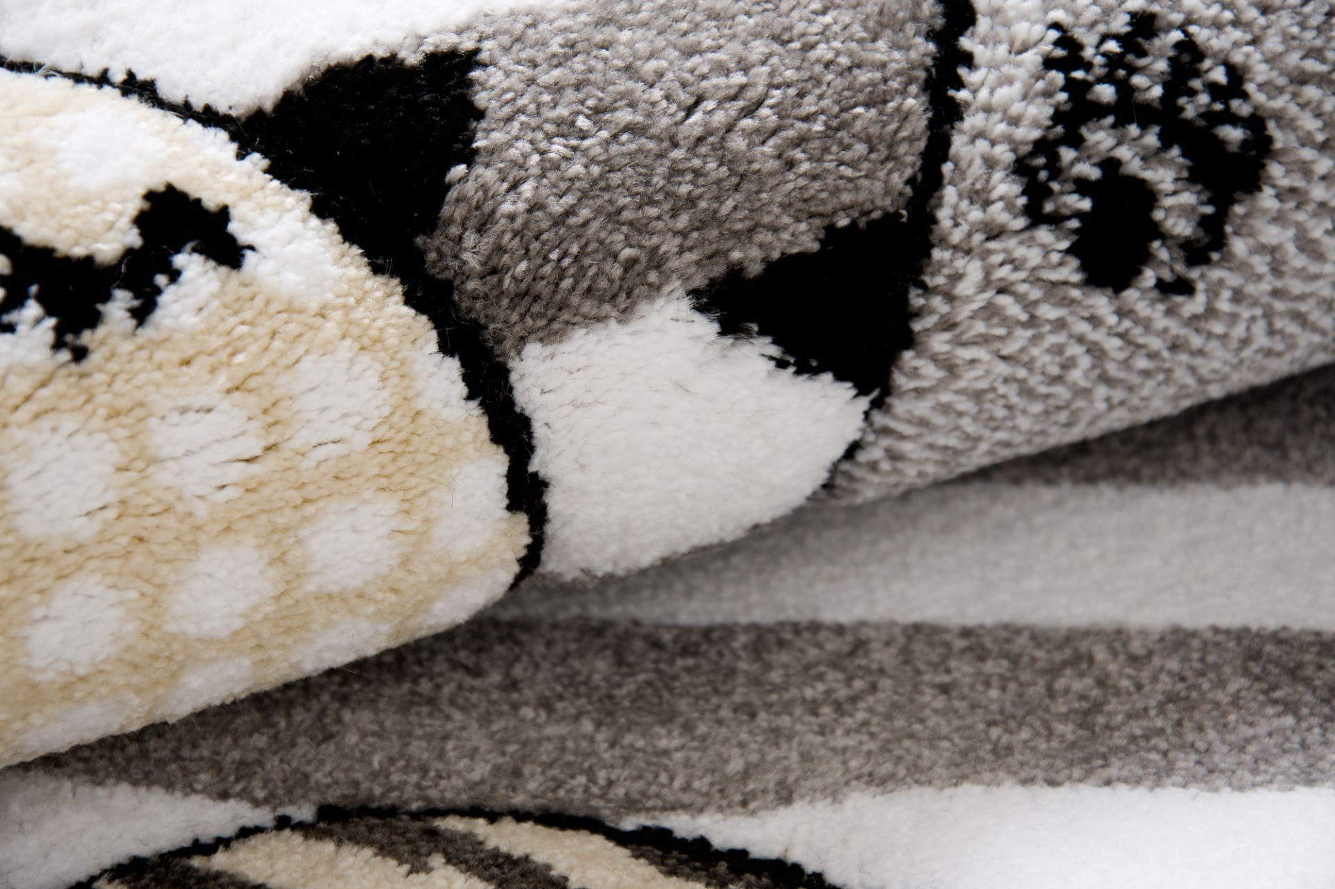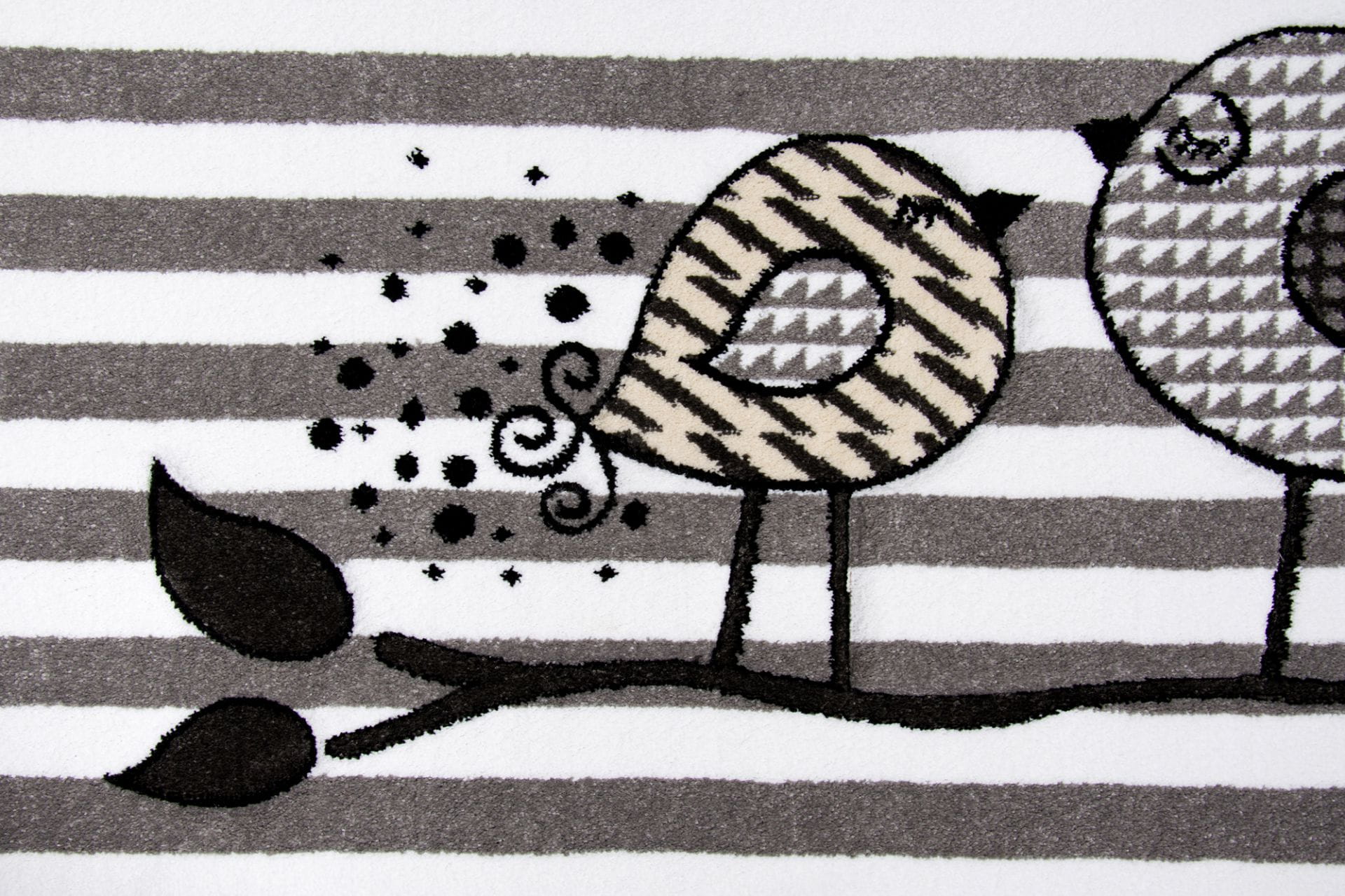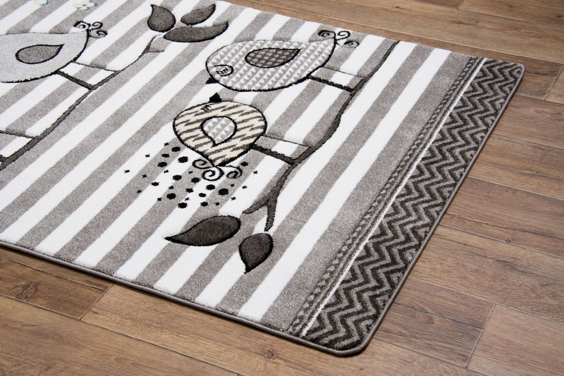 Ten dywan posiada prześliczny motyw ptaszków w pastelowych kolorach na tle pasów. Trójwymiarowy wzór osiągnięty przez wycinany relief sprawią, że te dywaniki będą przyjemną i wdzięczną dekoracją dziecięcego pokoju.
