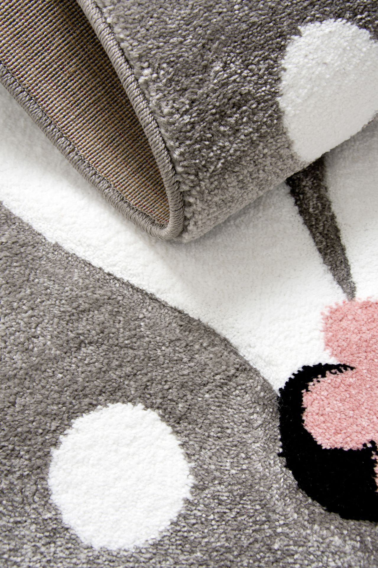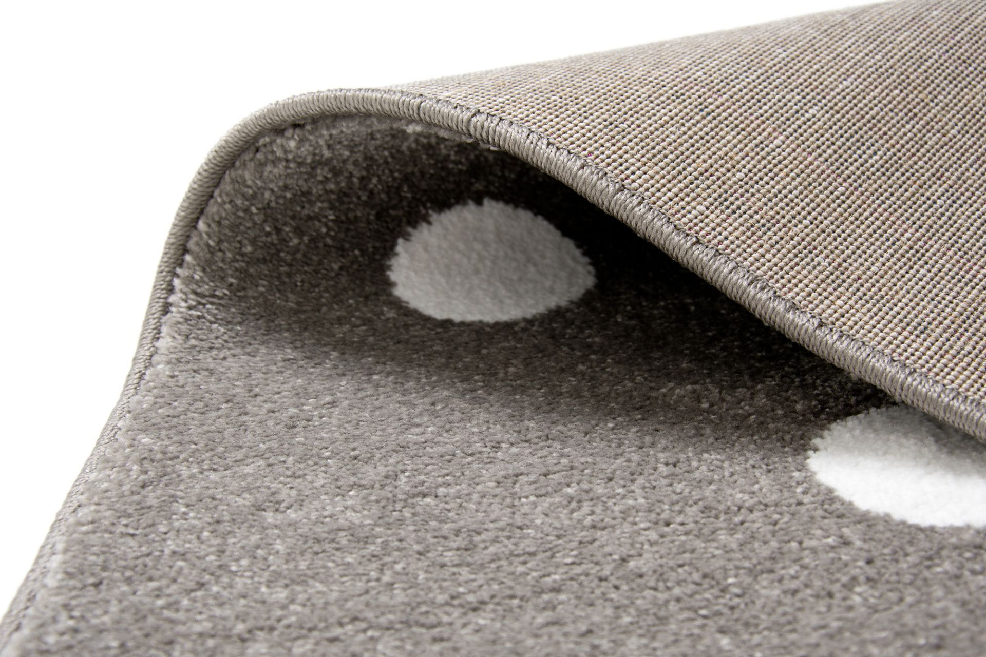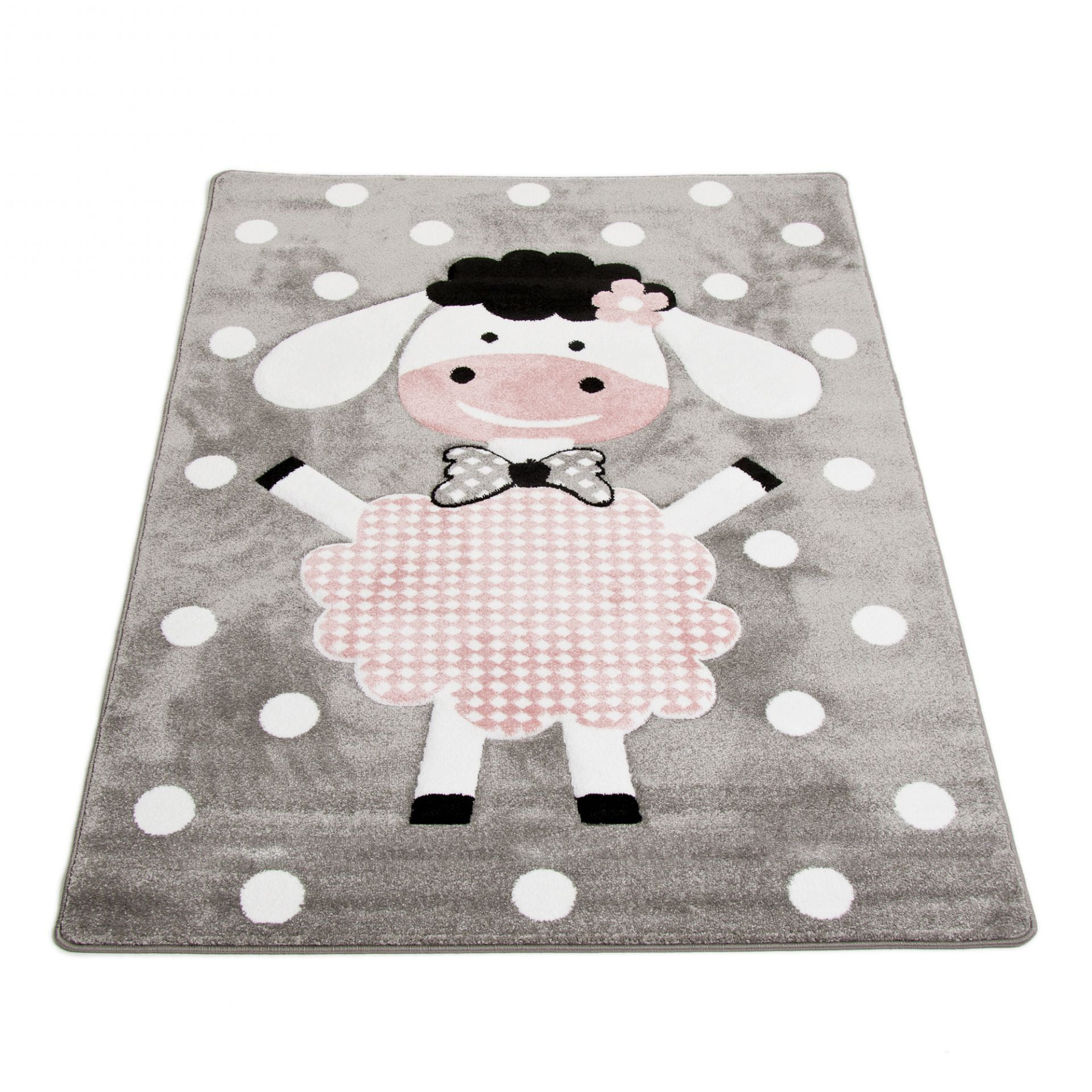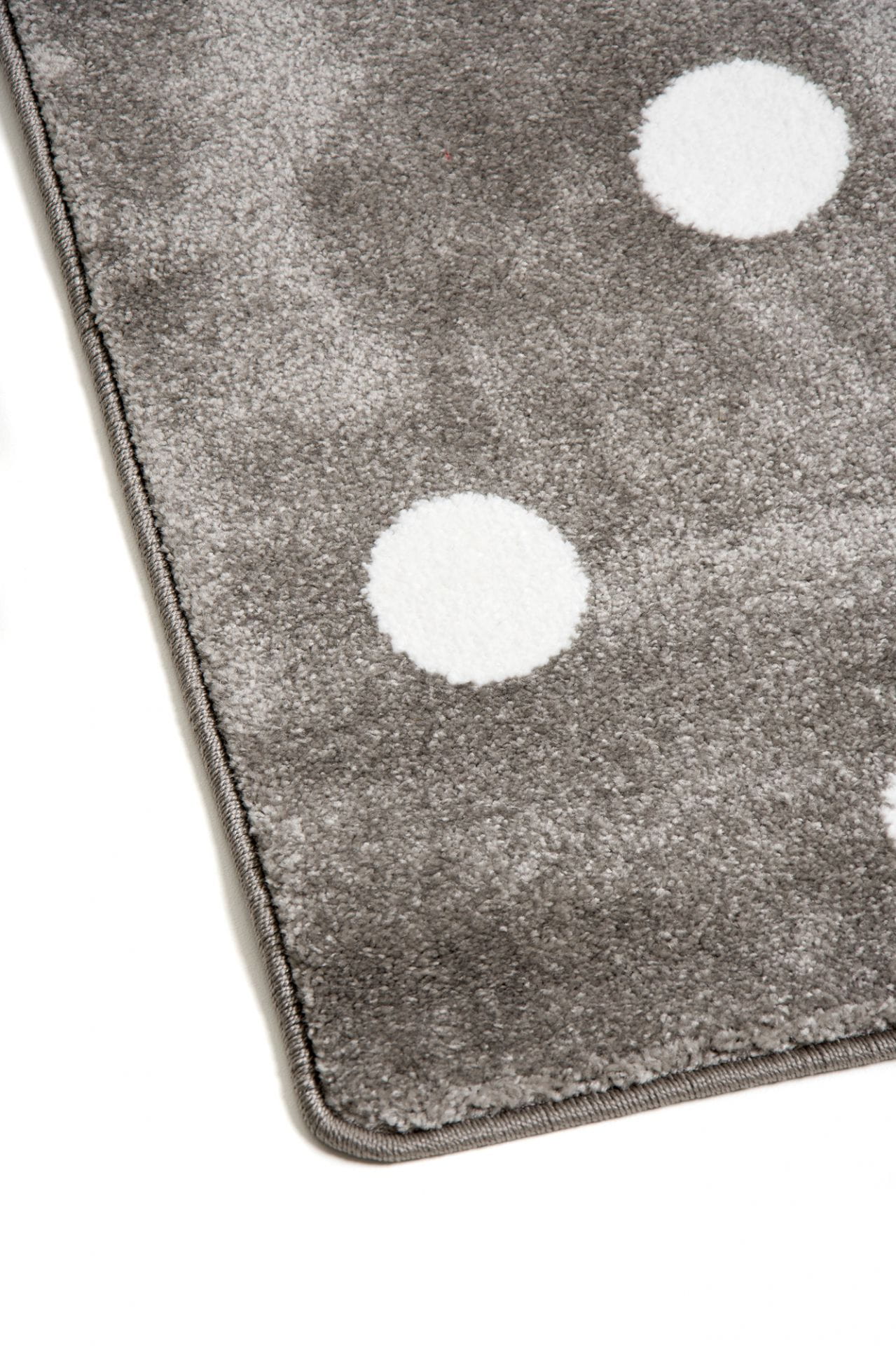 Ten dywan posiada prześliczny motyw białego króliczka z koroną na szarym tle w białe kropeczki. Trójwymiarowy wzór osiągnięty przez wycinany relief sprawią, że te dywaniki będą przyjemną i wdzięczną dekoracją dziecięcego pokoju.