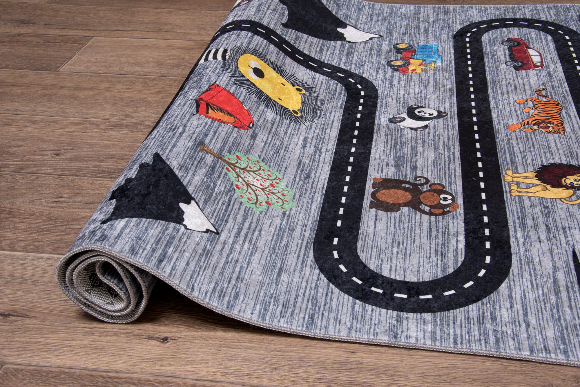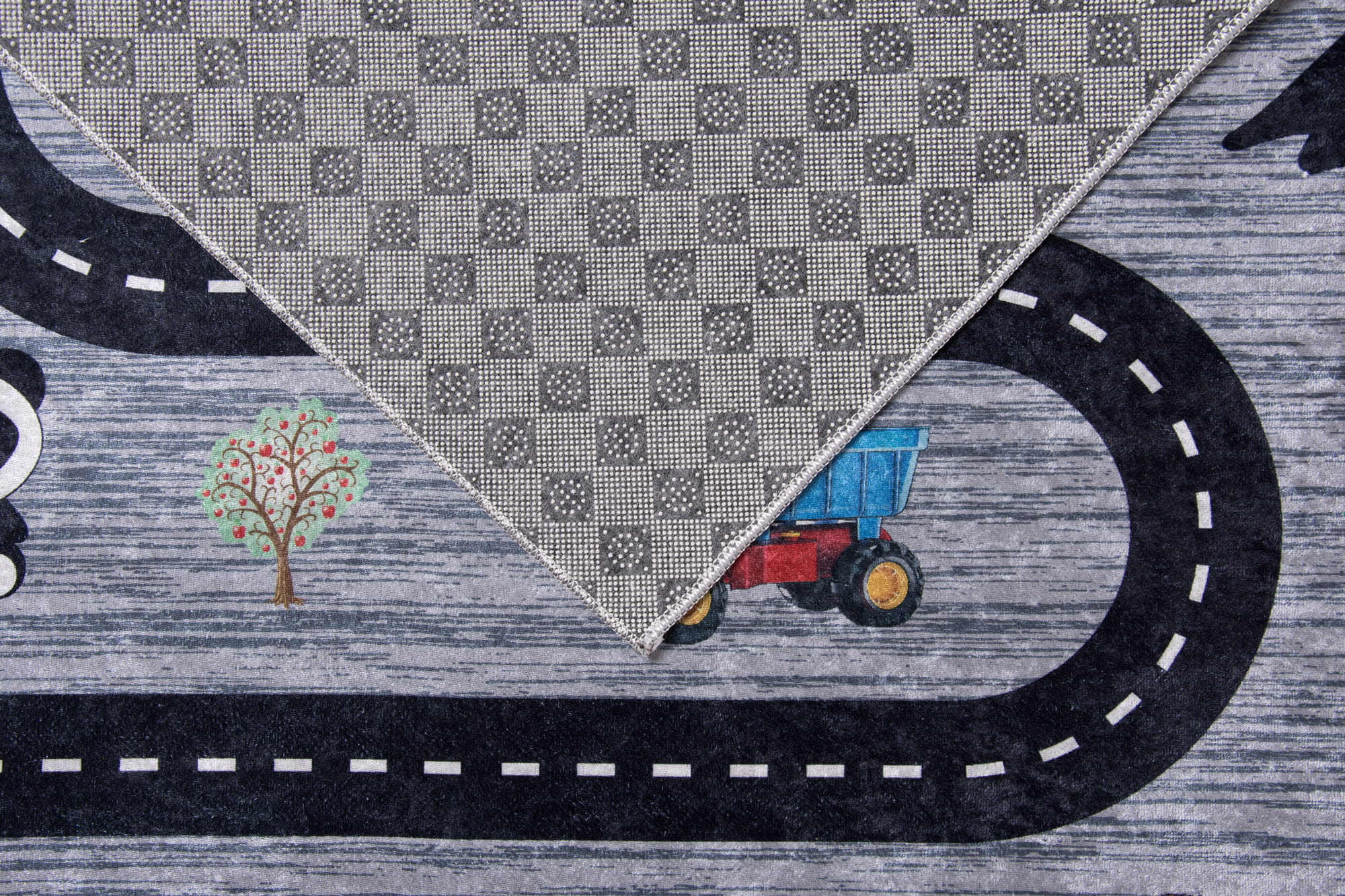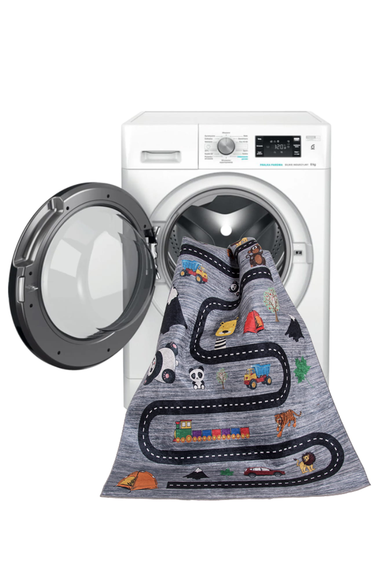 Dywan miasto to plac zabaw dla dzieci. Inspiruje do odkrywania fascynujących przygód na mięciutkim komfortowym podłożu. Niskie runo ułatwia czyszczenie, a antypoślizgowe wypustki na spodzie zapobiegają przesuwaniu się dywanu po podłodze, zwiększając bezpieczeństwo.