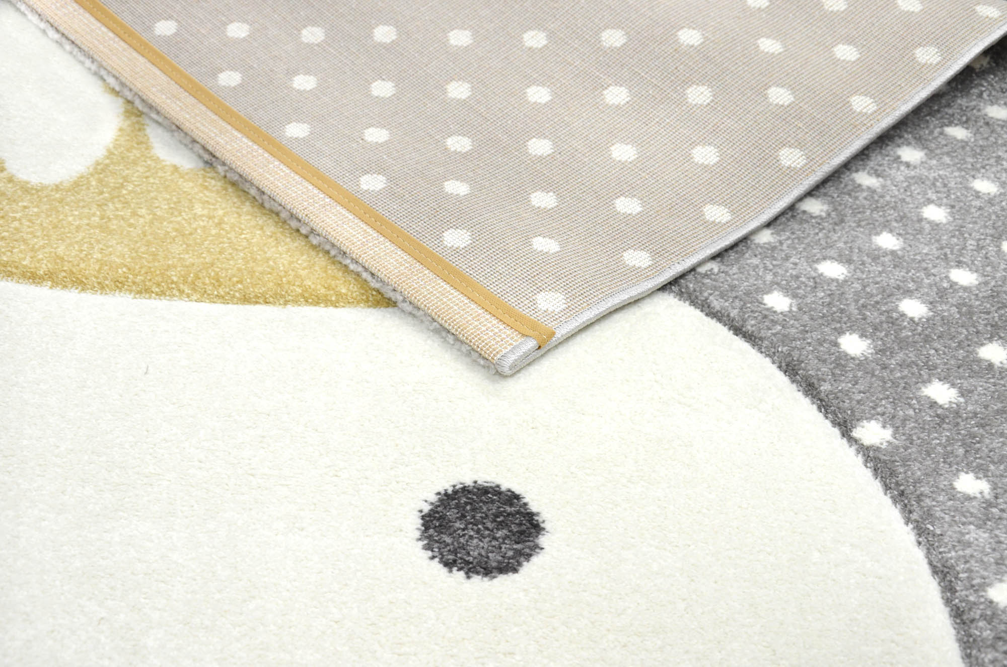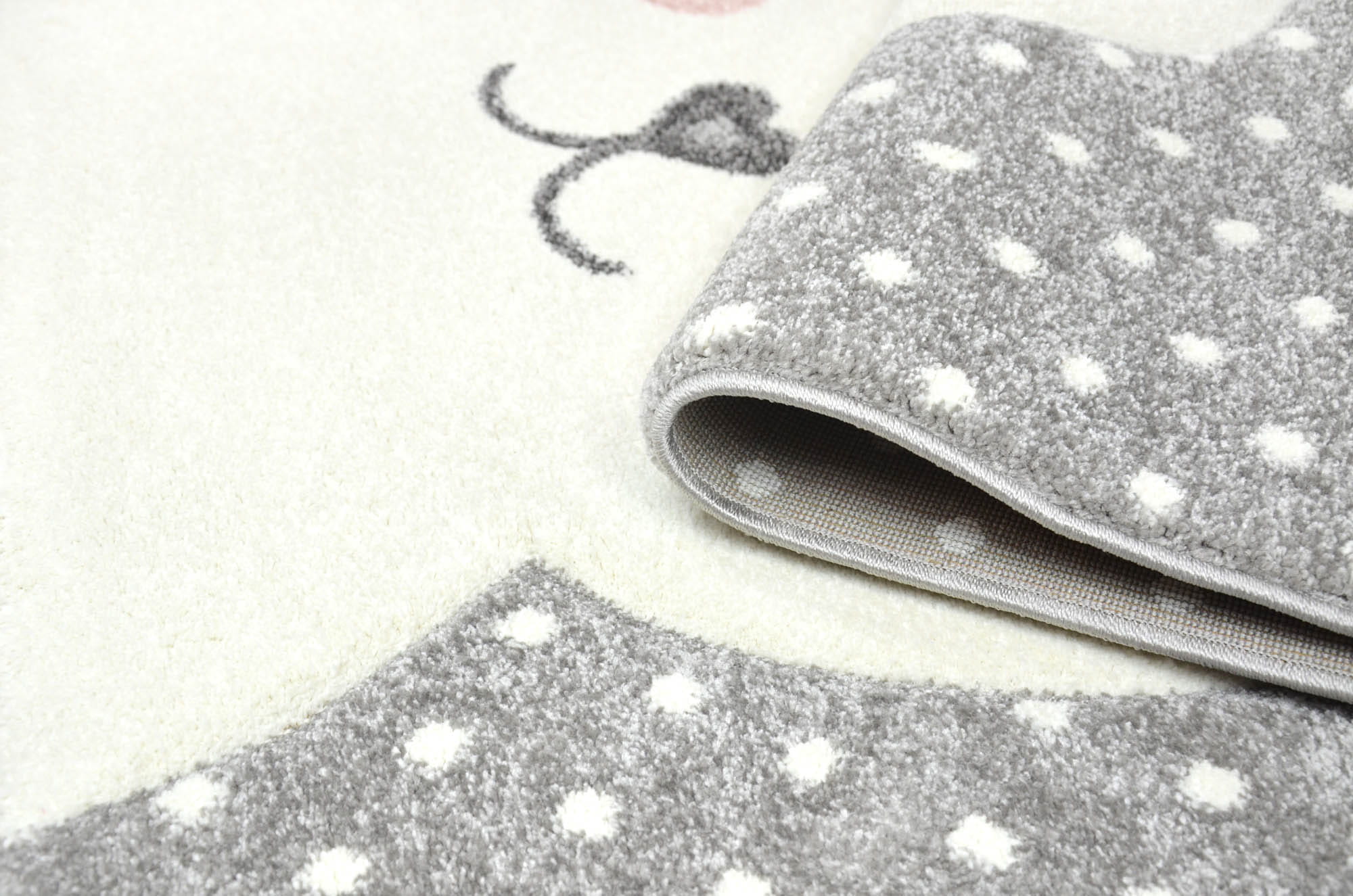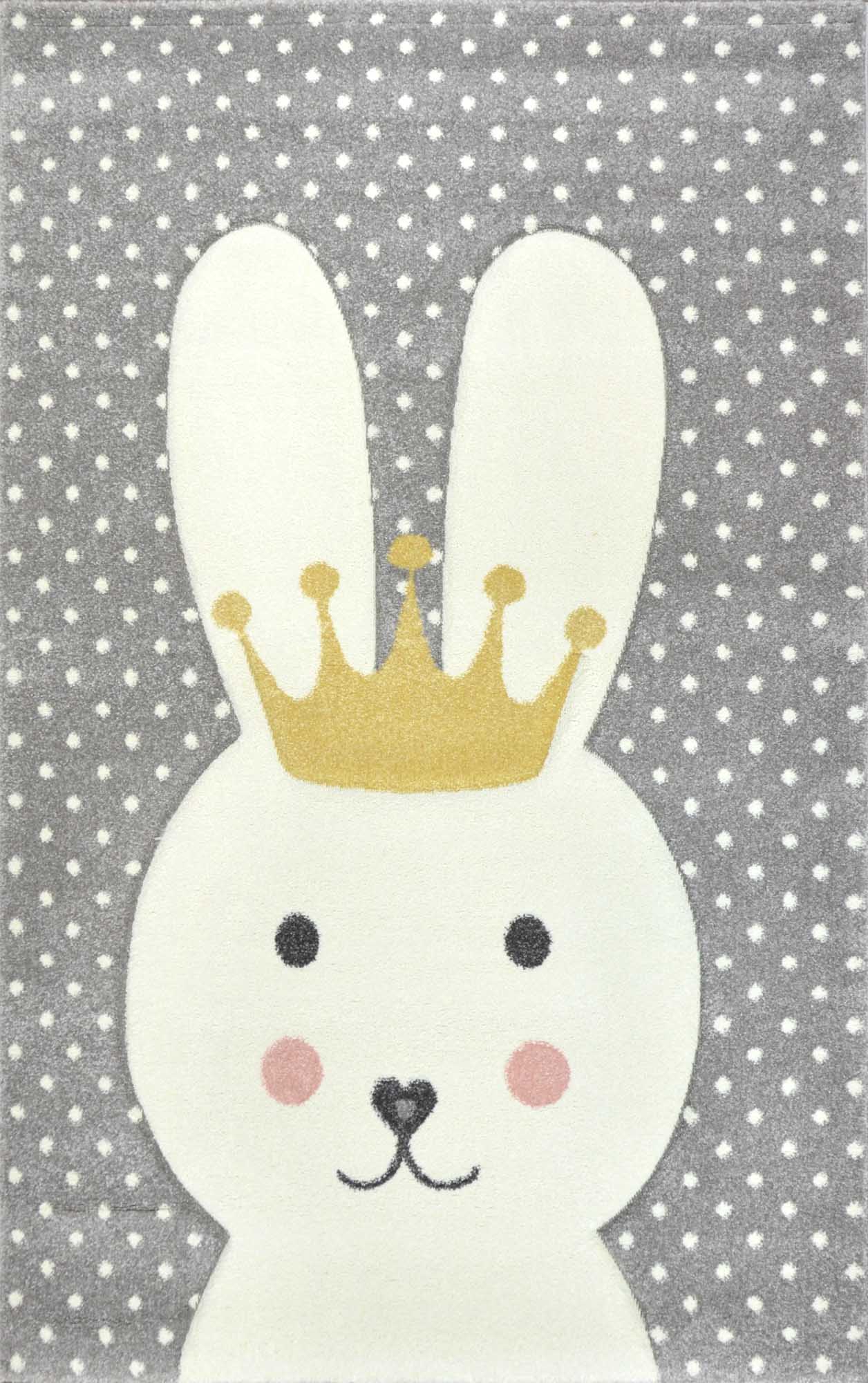 Dywan Smart Kids 22414 grey wyróżnia dziecięcy wzór 3D. Jest miękki i delikatny w dotyku, dzięki czemu zabawa na podłodze jest wygodna i komfortowa. Pastelowe kolory i wzór króliczka będzie świetnie wyglądał w pokoju maluszka, jak i starszego dziecka.