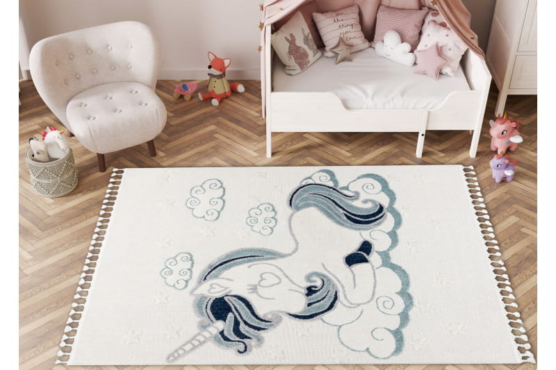 Kolekcja dywanów YOYO to doskonałe połączenie estetyki i użyteczności. Dzięki runie o dwóch różnych wysokościach, dywan zapewni dziecku stymulujące doznania sensoryczne podczas zabawy. YOYO GD49 to dywan w delikatnych, stonowanych kolorach ze wzorem bajkowego jednorożca. Naturalna paleta barw nadaje przytulności, nie przytłaczając przestrzeni.