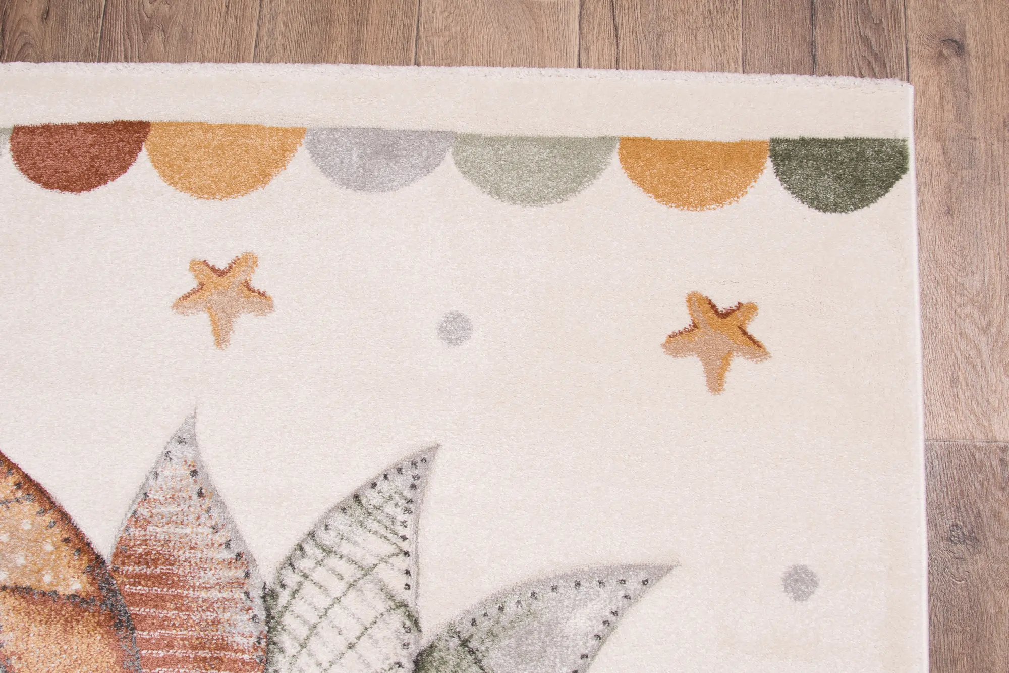 Dywan Luna to idealny wybór do pokoju dziecięcego. Wykonany z wysokiej jakości włókien syntetycznych, posiada miękkie runo z ręcznie wycinanym wzorem, który stymuluje rozwój sensoryczny dziecka. Delikatna kolorystyka i uroczy motyw słoneczka wprowadzają do wnętrza ciepło i przytulność, tworząc przestrzeń sprzyjającą zabawie i odpoczynkowi.