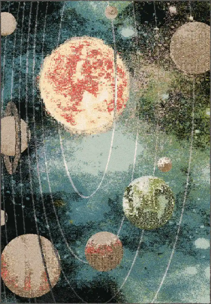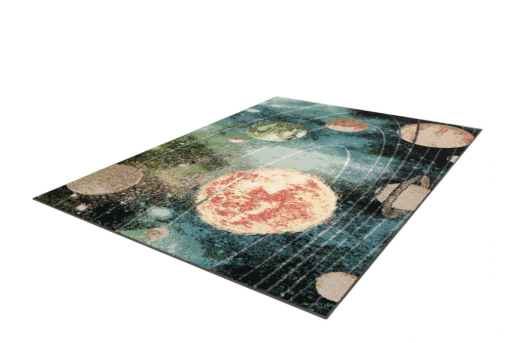 Dywan z układem słonecznym to doskonały wybór dla młodych fanów kosmosu. Miękkie runo z przędzy syntetycznej zapewnia łatwe czyszczenie, a motyw z planetami ożywi dziecięcy pokój. Posiada atest PZH, dlatego można go bezpiecznie stosować w pokojach dziecięcych, przedszkolach i żłobkach.