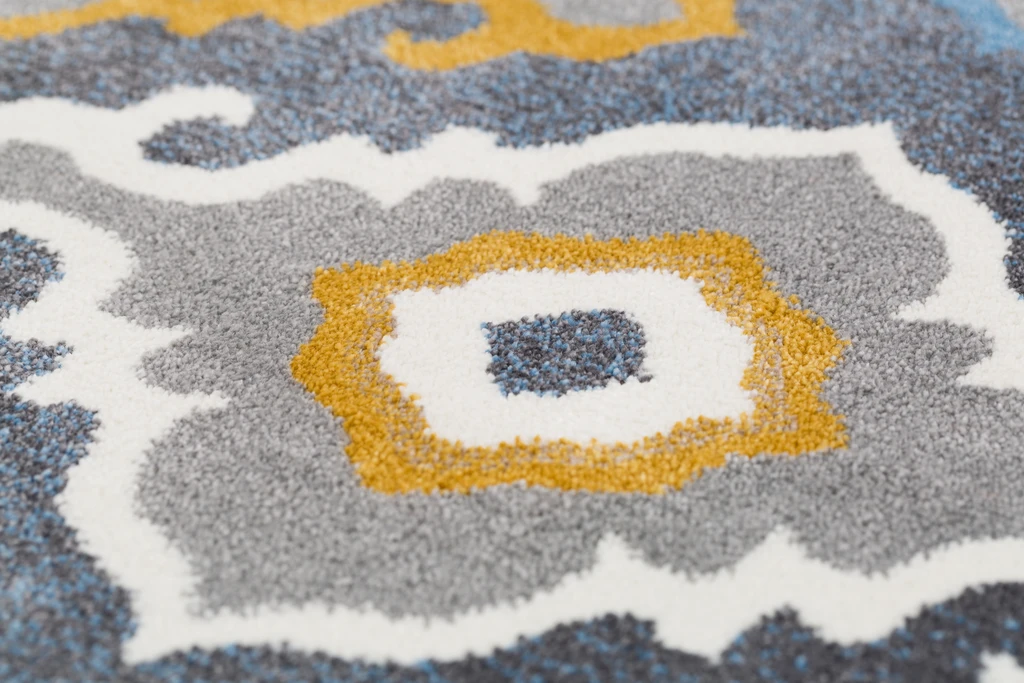 Dywan wykonano z uszlachetnionej termicznie przędzy polipropylenowej Heat Set, dzięki czemu jest miękki i przyjemny w dotyku. Charakteryzuje się również lekkim połyskiem, dzięki czemu w zależności od kierunku ułożenia włosia runo jest jaśniejsze lub ciemniejsze, dając bardzo ciekawy efekt.