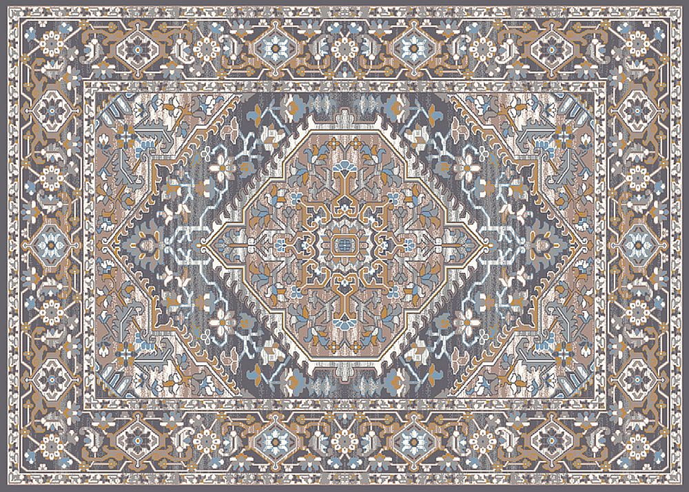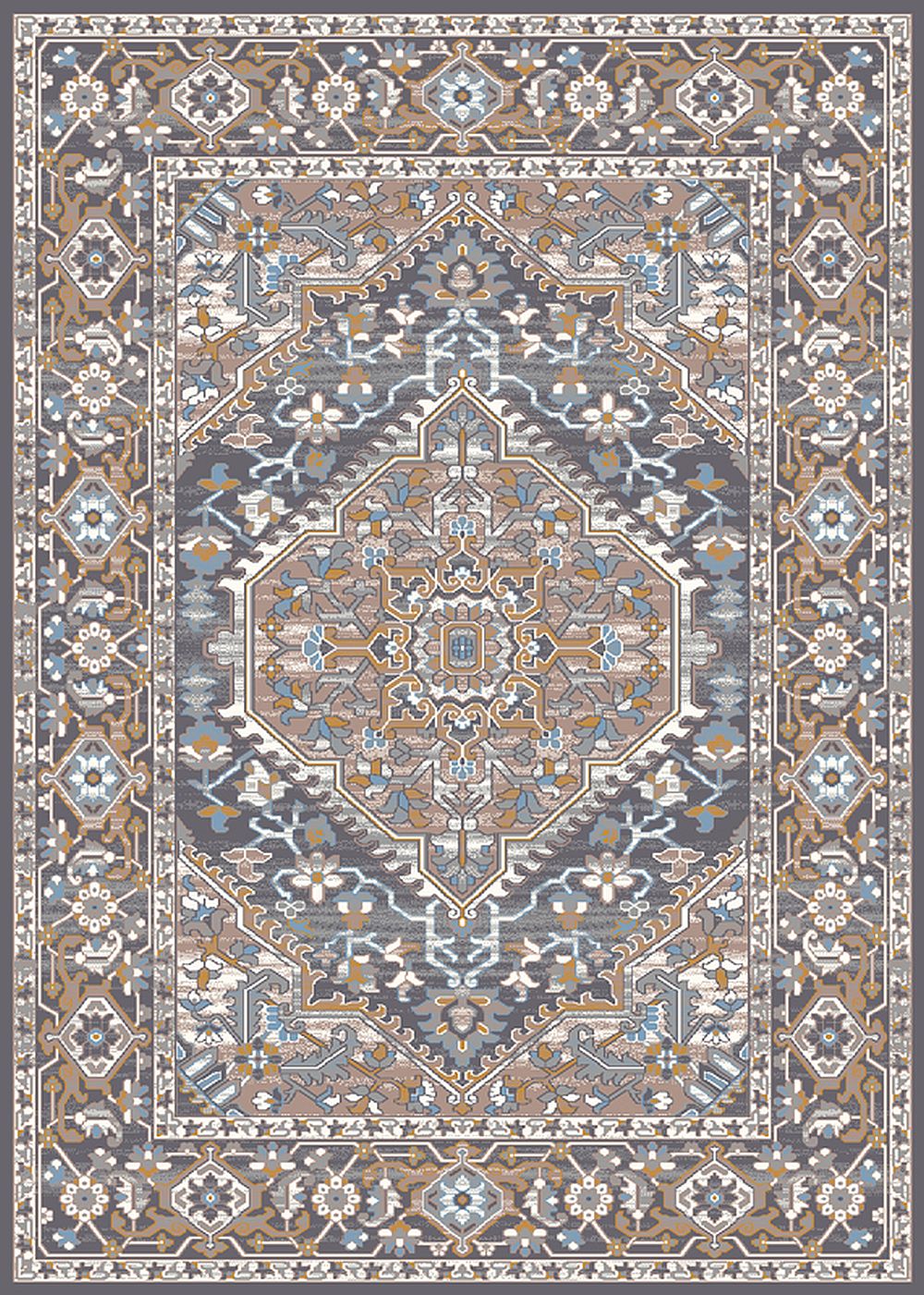 Dywan wykonano z uszlachetnionej termicznie przędzy polipropylenowej Heat Set, dzięki czemu jest miękki i przyjemny w dotyku. Charakteryzuje się również lekkim połyskiem, dzięki czemu w zależności od kierunku ułożenia włosia runo jest jaśniejsze lub ciemniejsze, dając bardzo ciekawy efekt.