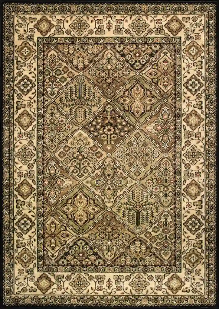 Dywan FD Standard Bergenia w kolorze oliwkowym charakteryzuje orientalny wzór, który podkreśla jego wytworność. Wykonany z uszlachetnionej przędzy polipropylenowej Heat Set, jest trwały, odporny na codzienne użytkowanie i łatwy w utrzymaniu czystości.
