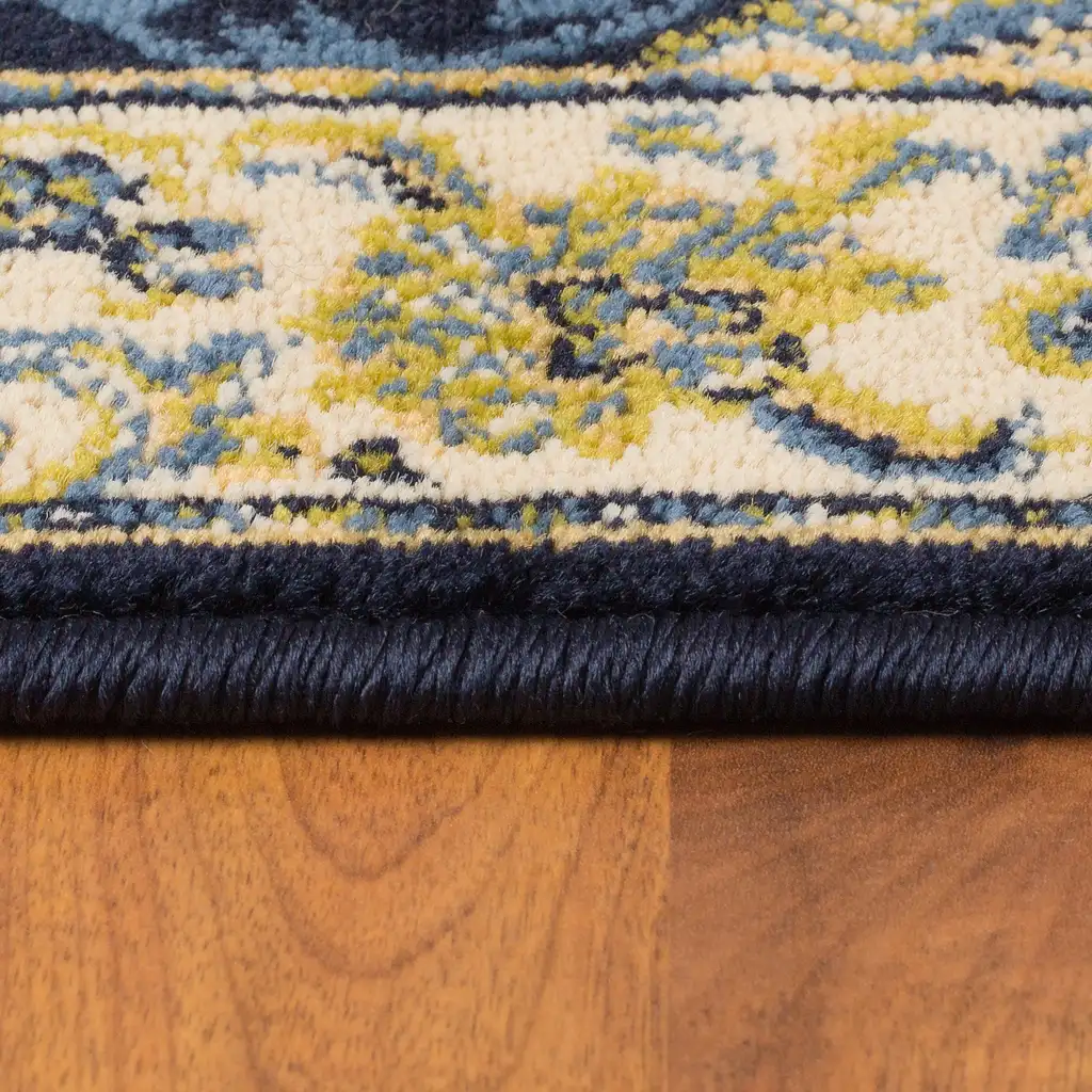Dywan Standard Nazar niebieski wykonany z uszlachetnionej termicznie przędzy polipropylenowej Heat Set. Miękkie i delikatne w dotyku runo do złudzenia przypomina dywan wełniany. Łatwo się czyści i odkurza, trwały, odporny na utratę kolorów i odkształcanie.