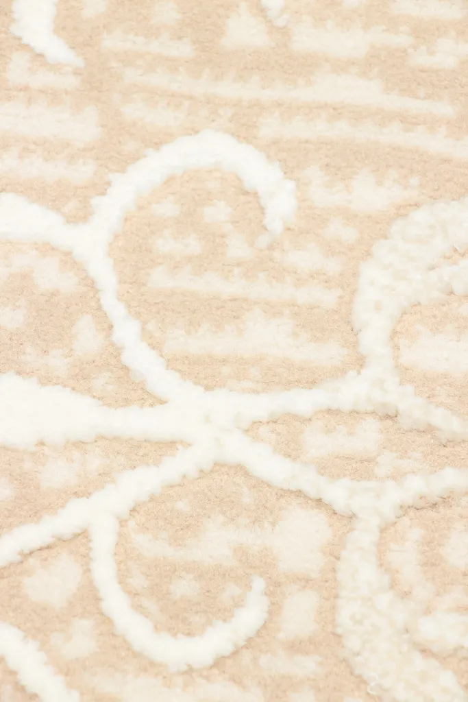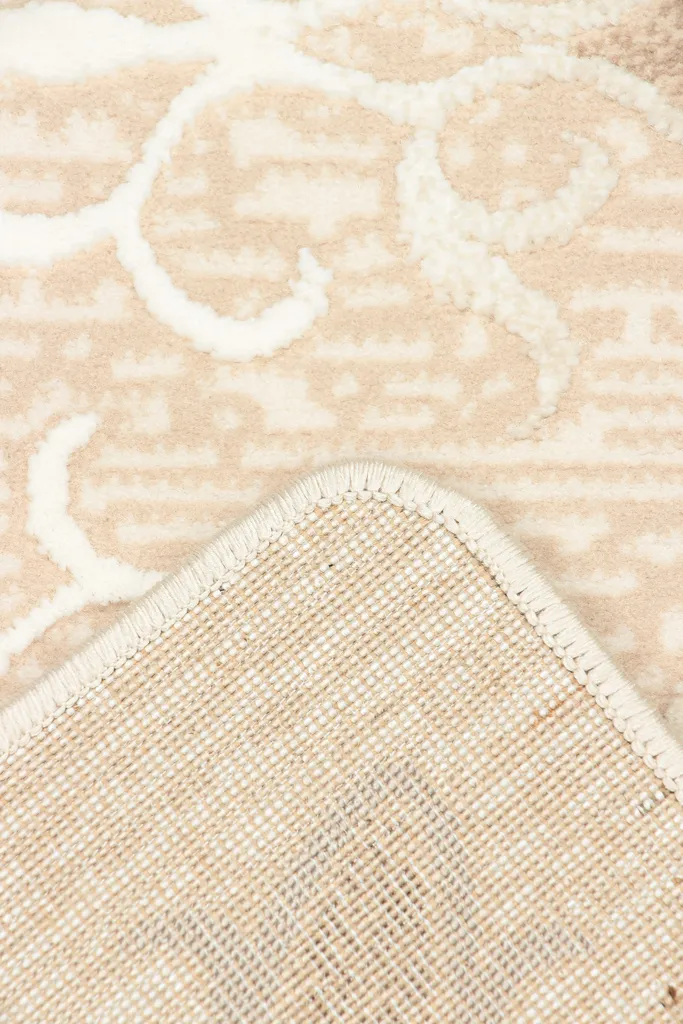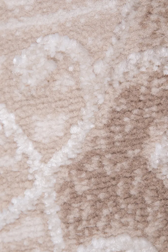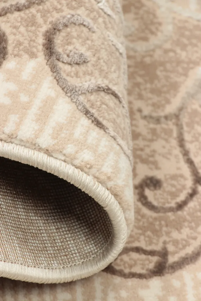 Klasyczny dywan z poliestru i polipropylenu z dwupoziomowym runem tworzącym efekt 3d. Utrzymany w stonowanej kolorystyce beżu, brązu, nadaje wnętrzu elegancji i głębi. Miękki w dotyku, trwały i łatwy w pielęgnacji.