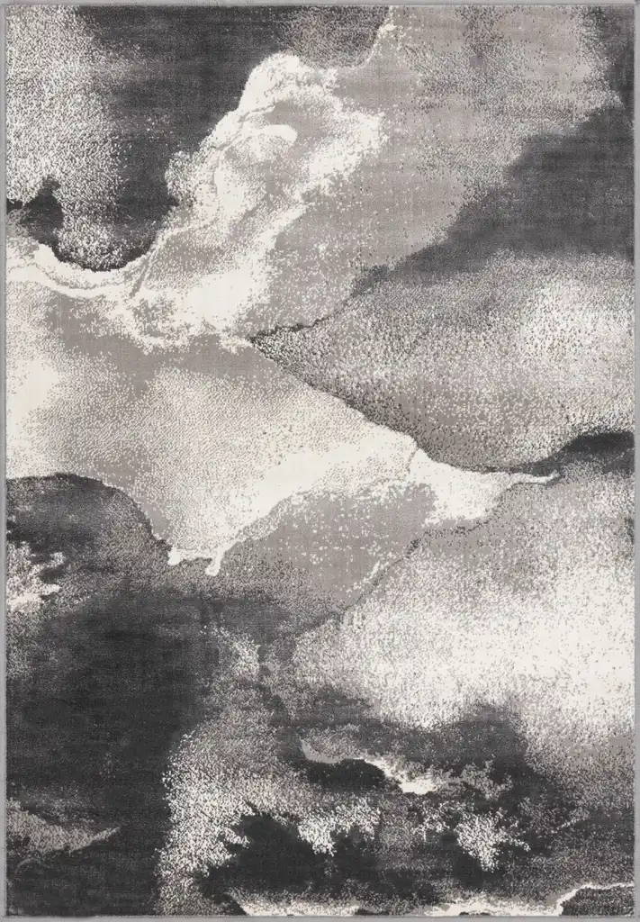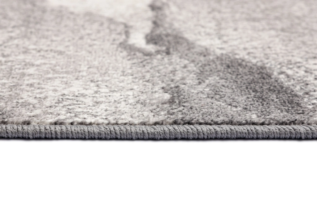 Dywan o abstrakcyjnym wzorze imitującym naturalny kamień. Został wykonany z przędzy polipropylenowej więc jest bardzo łatwy w utrzymaniu czystości. Krótkie runo jest praktyczne nawet wówczas, gdy w domu zamieszkują czworonogi.