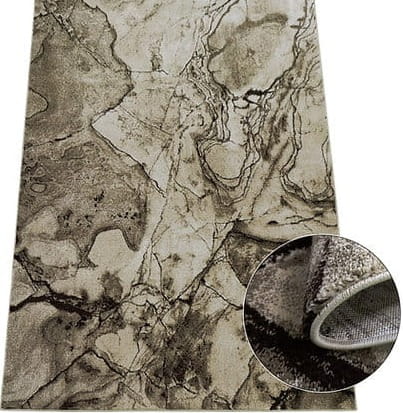 Dywan Wenus wykonany z przędzy syntetycznej uszlachetnionej termicznie o abstrakcyjnym wzorze imitującym kamień. Trwały i praktyczny w użytkowaniu.
